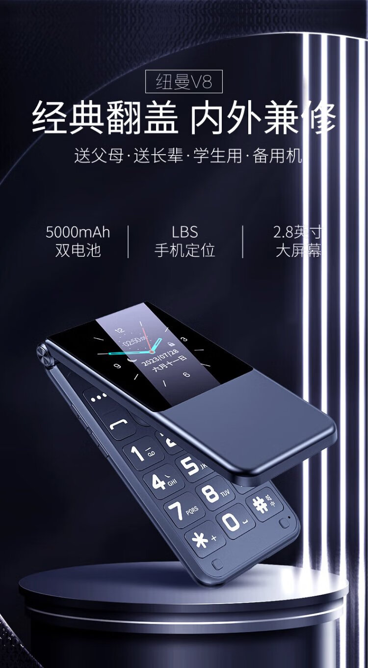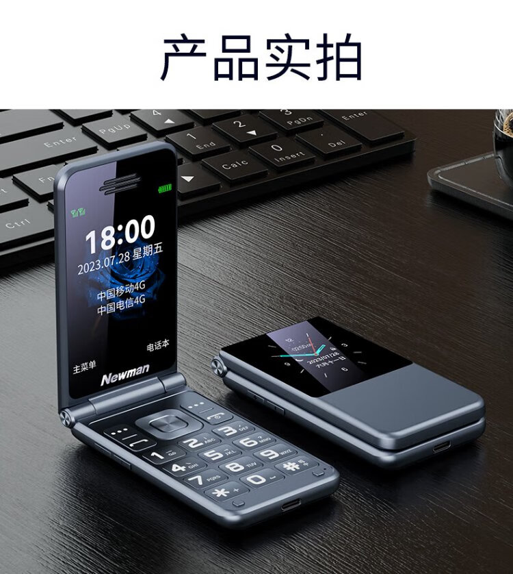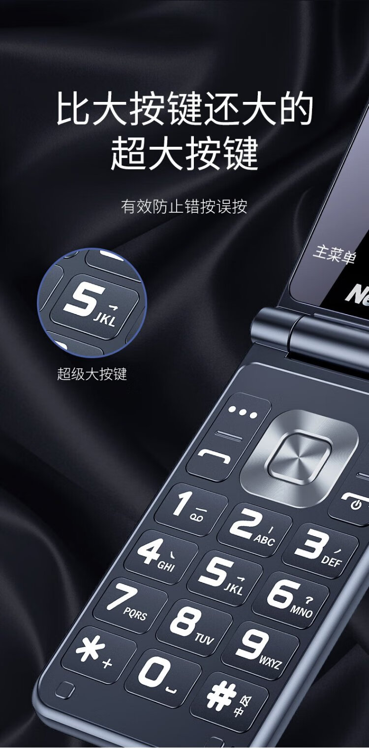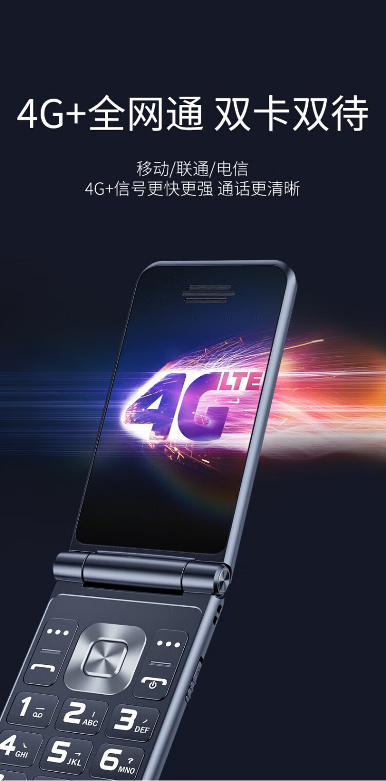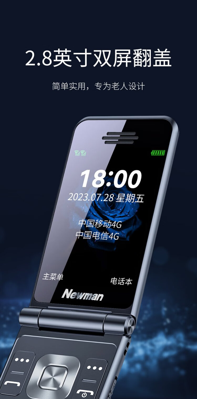 Newman V8 flip phone for the elderly, super long standby 4G phone for the elderly, 2.8-inch big font, big sound, big buttons, senior phone, student backup function phone, jazz black
