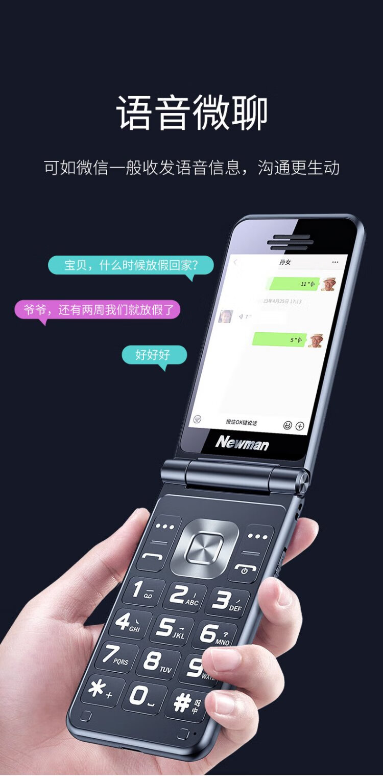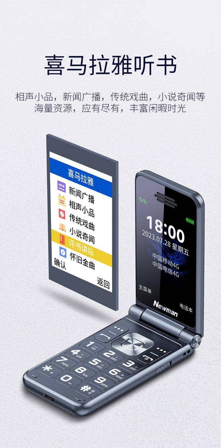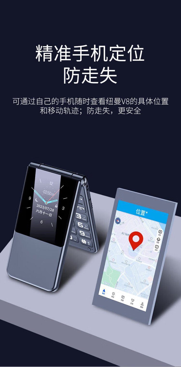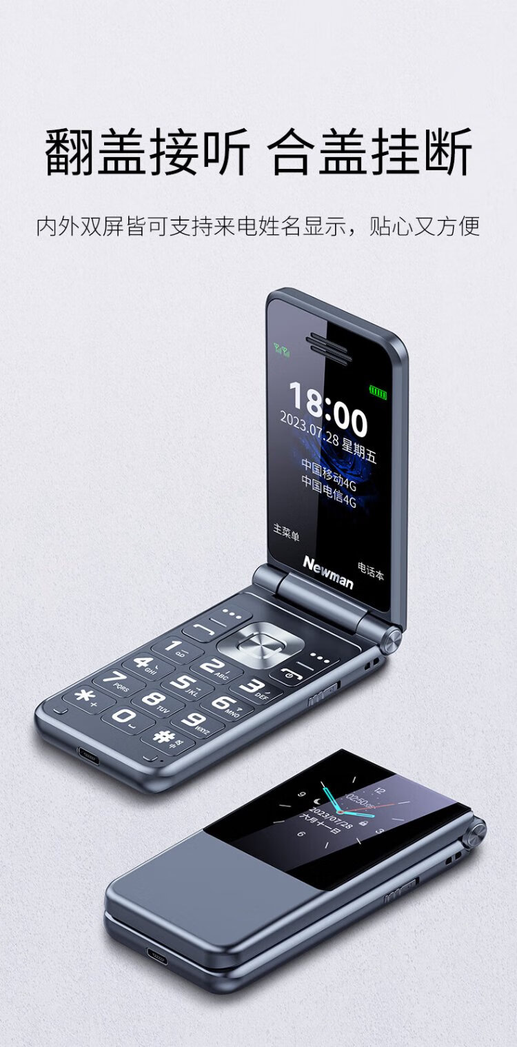 Newman V8 flip phone for the elderly, super long standby 4G phone for the elderly, 2.8-inch big font, big sound, big buttons, senior phone, student backup function phone, jazz black