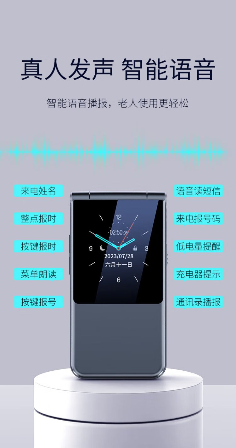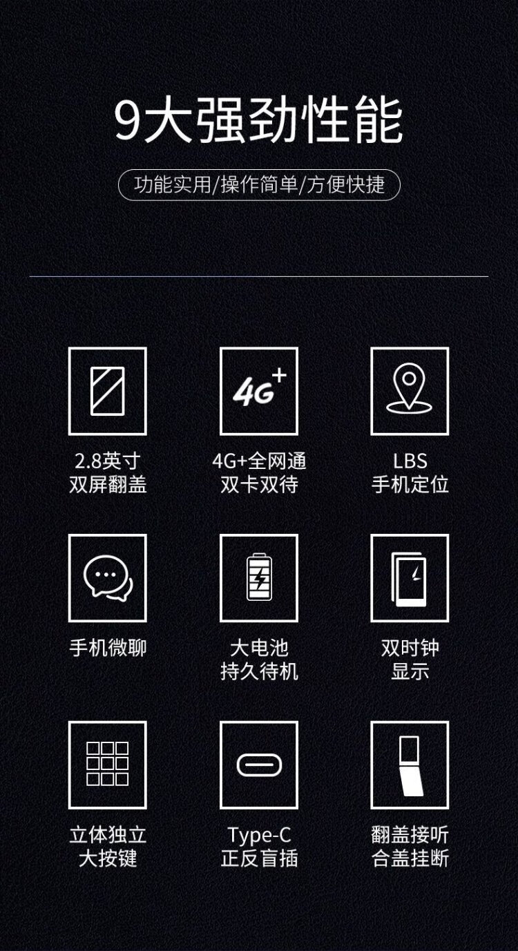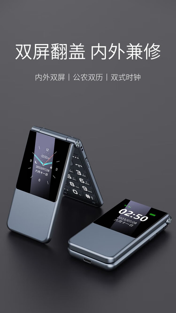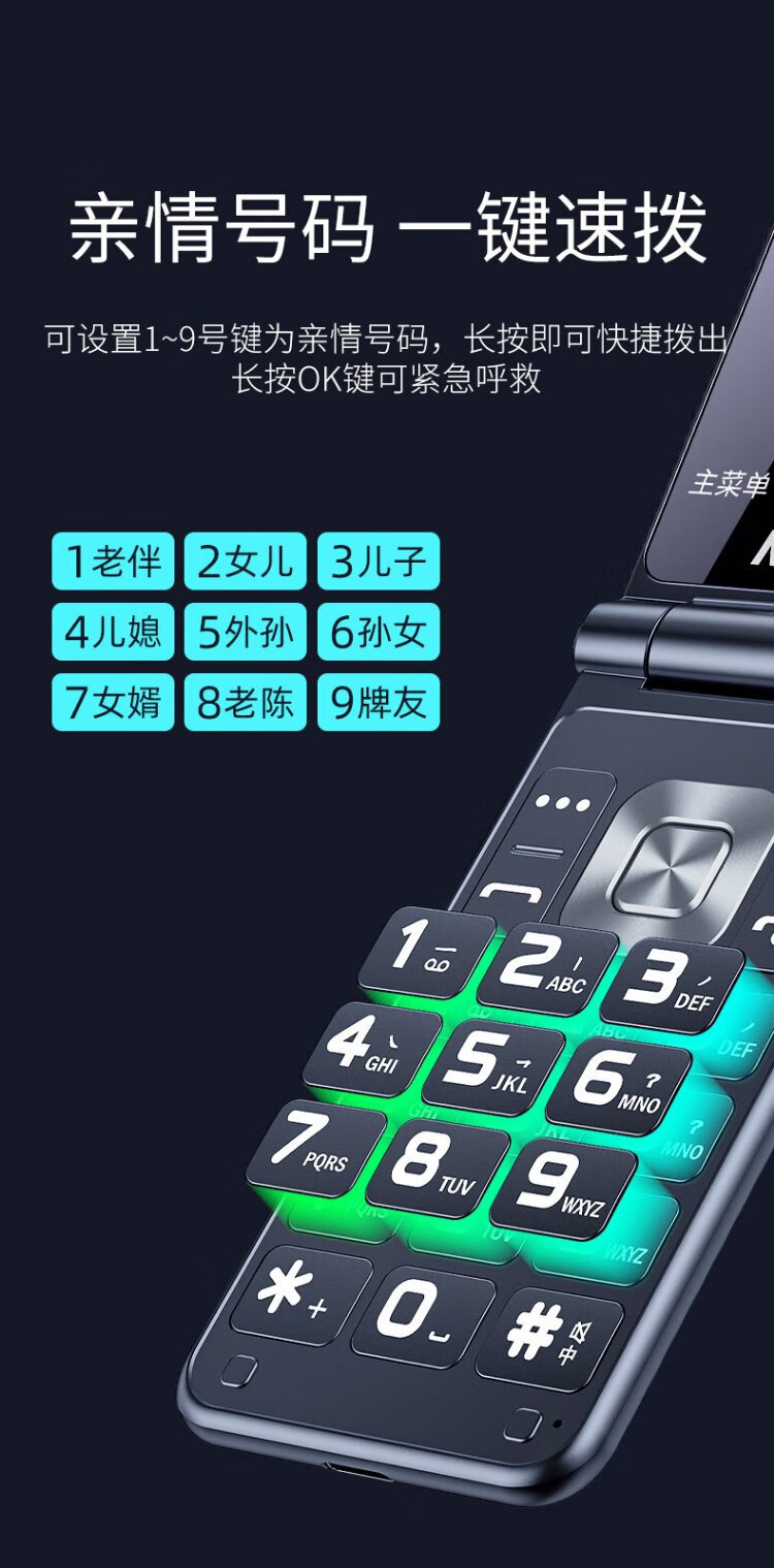 Newman V8 flip phone for the elderly, super long standby 4G phone for the elderly, 2.8-inch big font, big sound, big buttons, senior phone, student backup function phone, jazz black