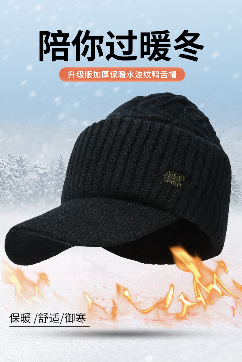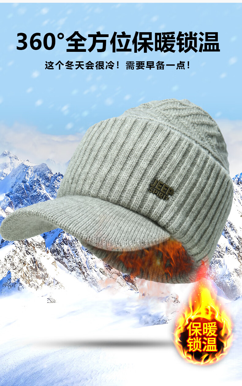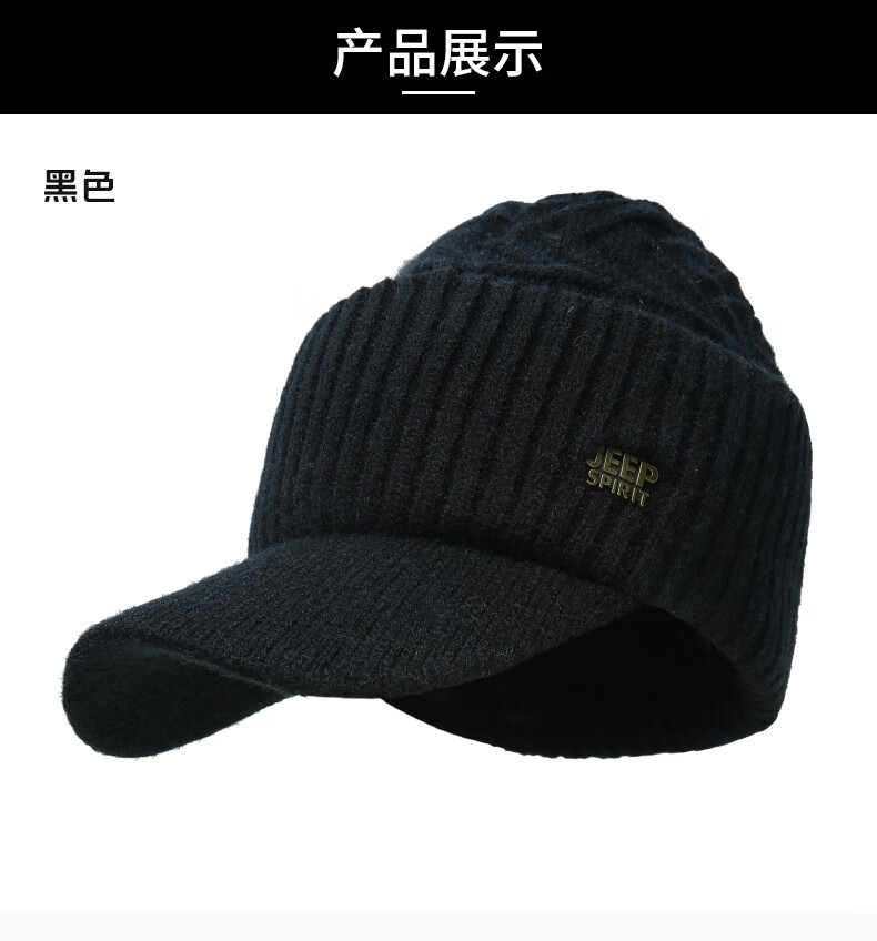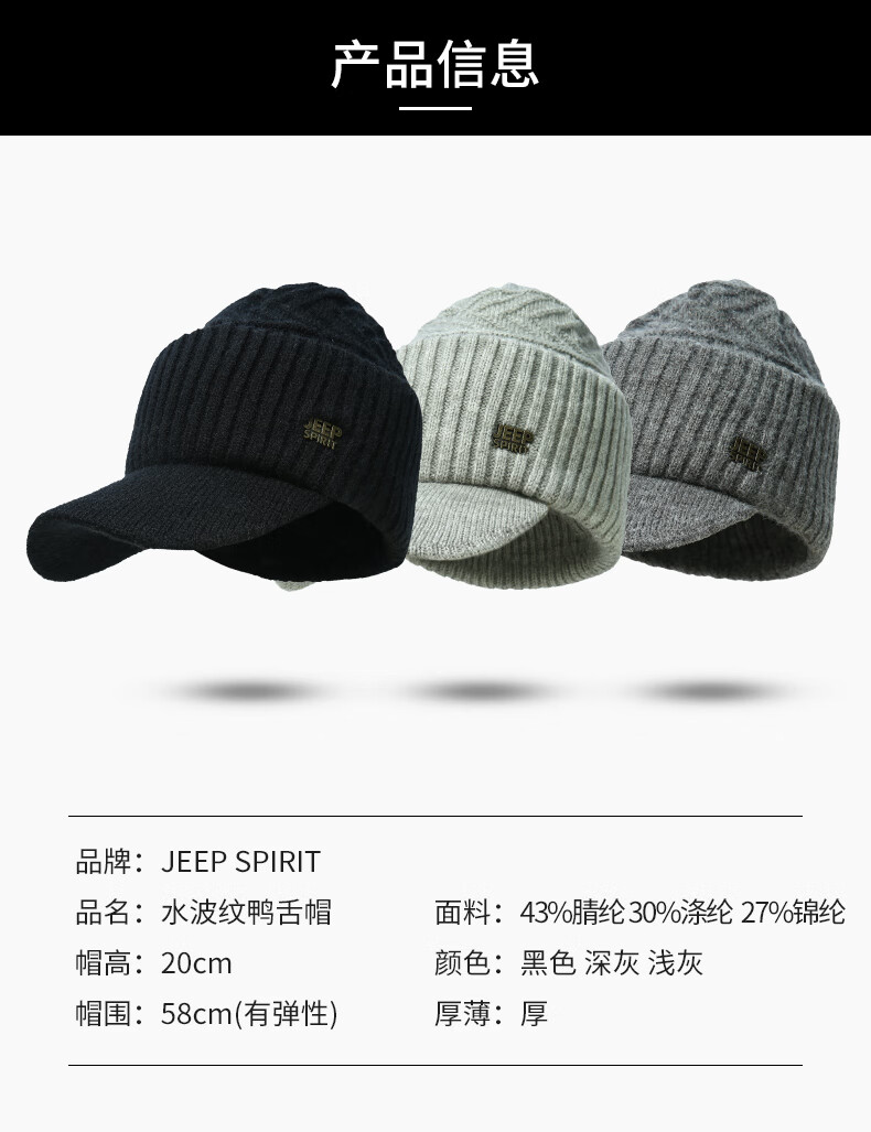 JEEP hat men's woolen hat thickened warm knitted hat autumn and winter ear protection cold winter hat peaked cap A0638