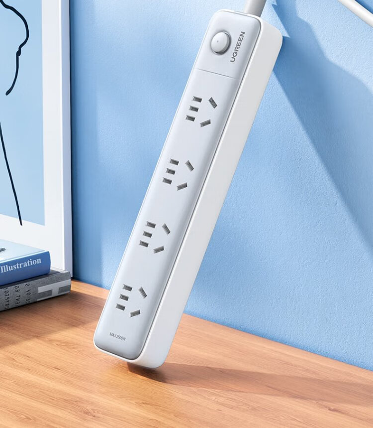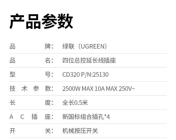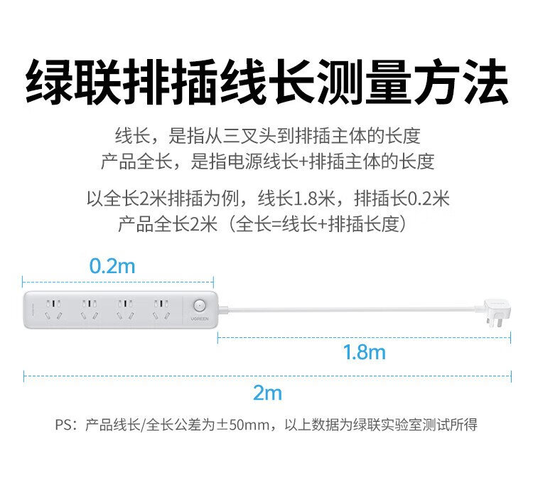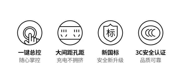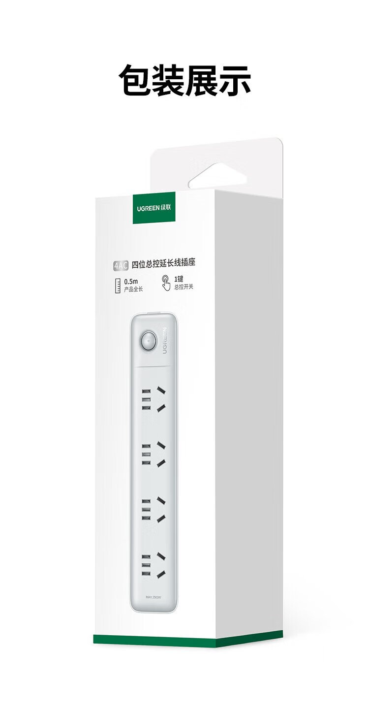 Green Alliance plug-in strip/socket board/row plug/socket/socket board/pull line board/student dormitory home desktop with line new national standard large spacing 4-digit master control total length 0.5 meters