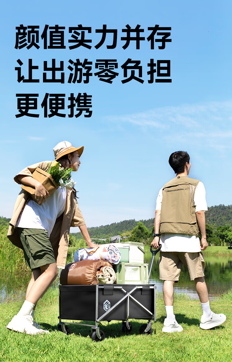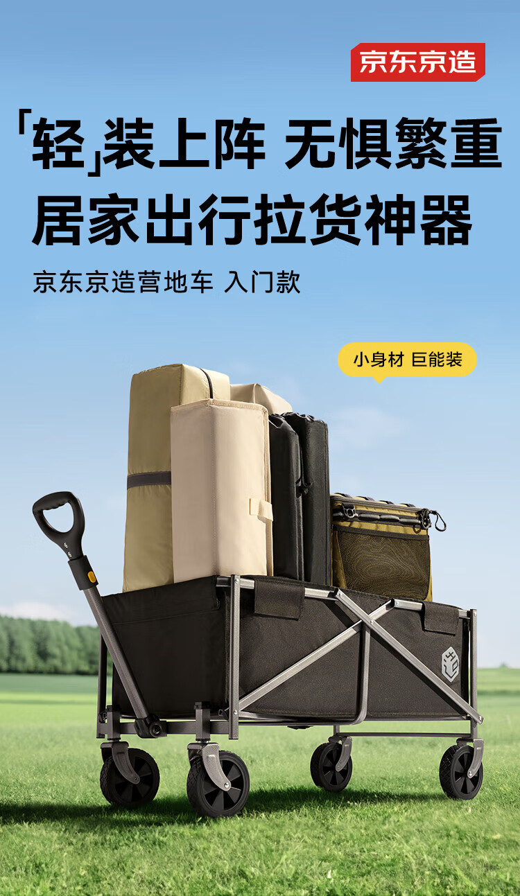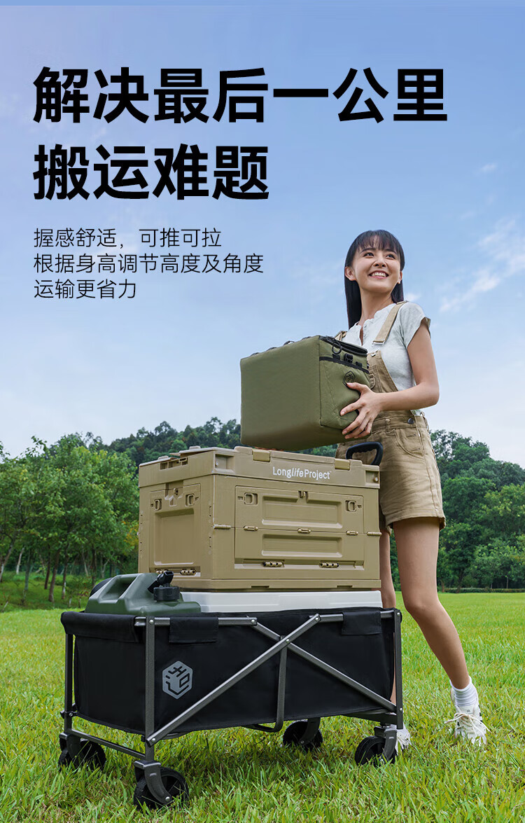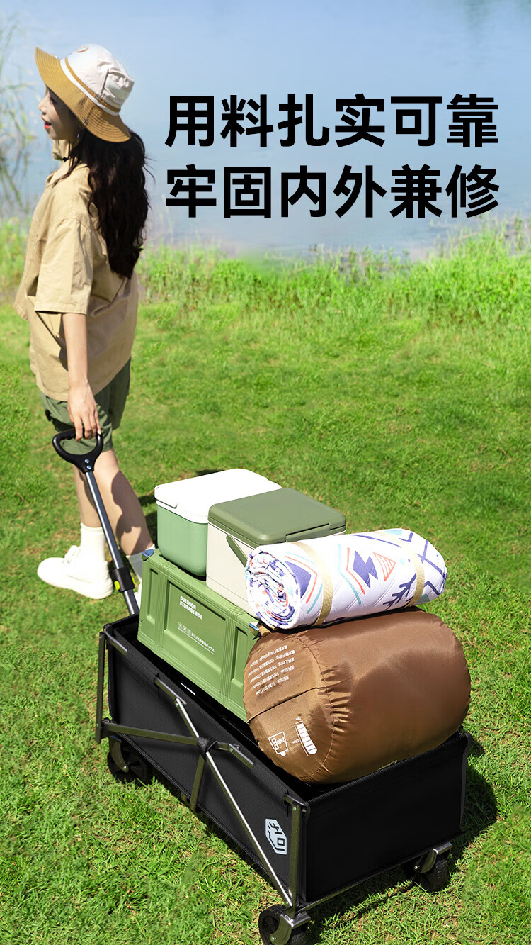 Made in Tokyo, outdoor camper, foldable storage camp car, trolley trailer, picnic stall travel equipment, graphite black
