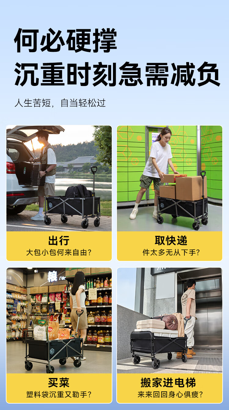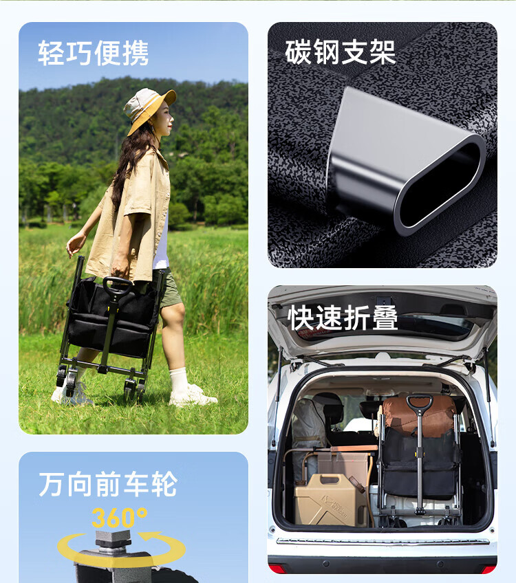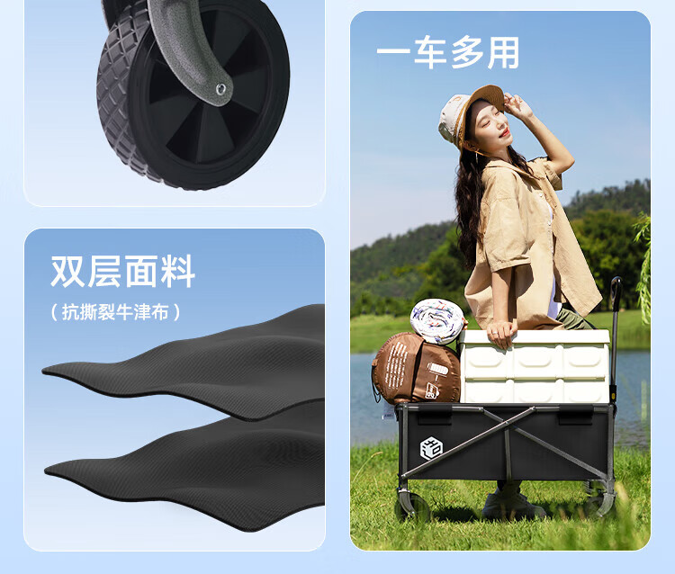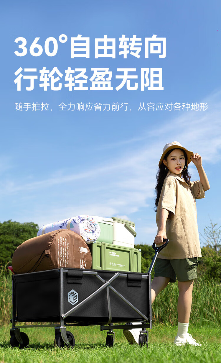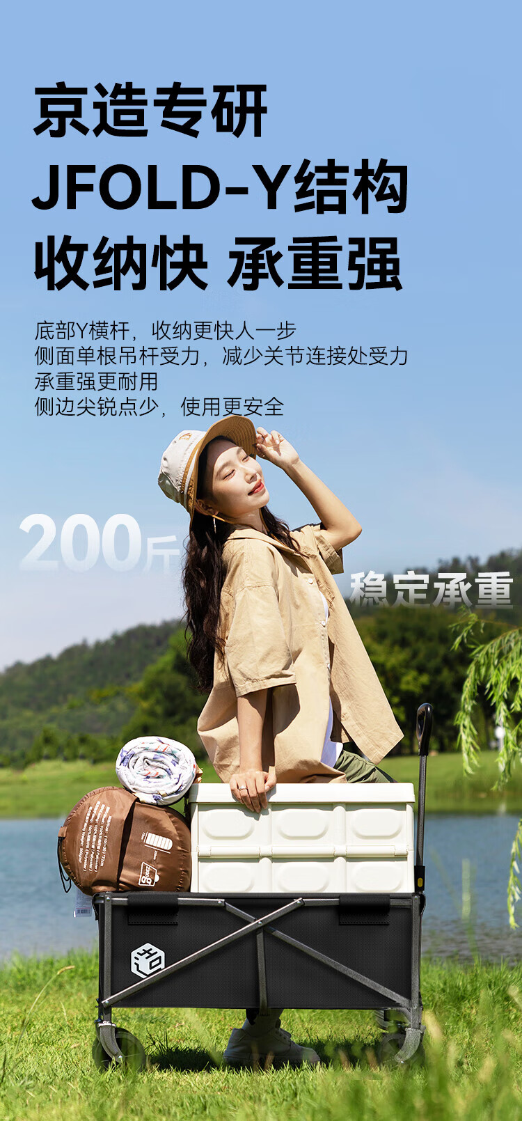 Made in Tokyo, outdoor camper, foldable storage camp car, trolley trailer, picnic stall travel equipment, graphite black
