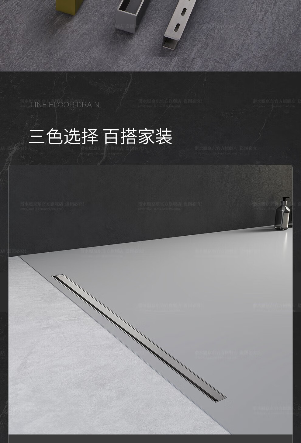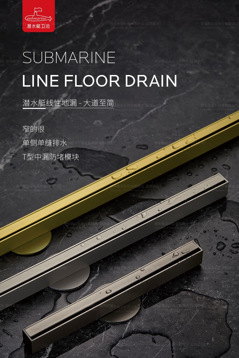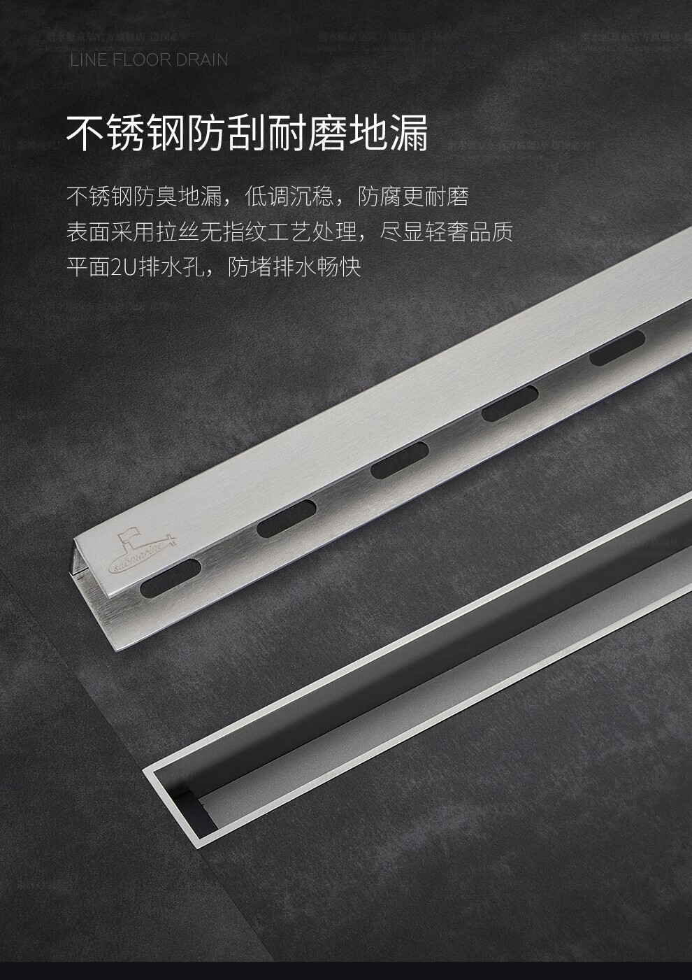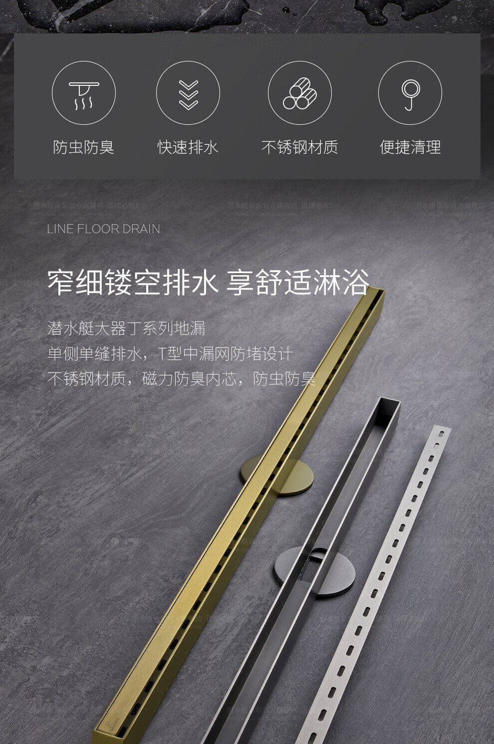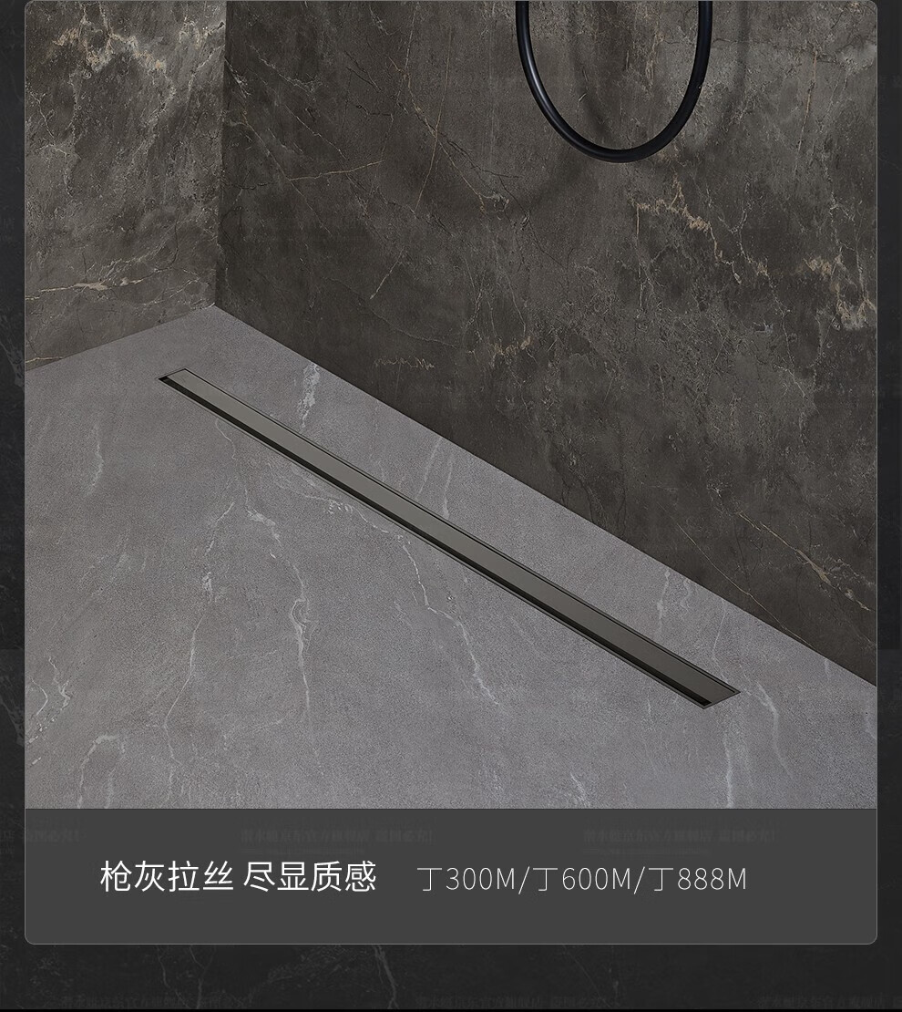 Submarine 600M stainless steel linear extremely narrow strip floor drain gun gray large displacement bathroom shower room high-end rectangular shower floor drain