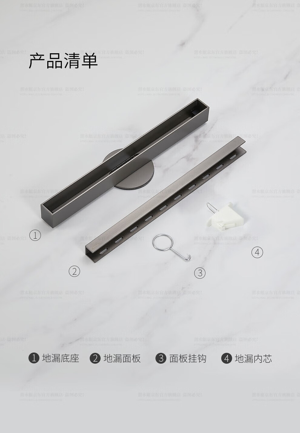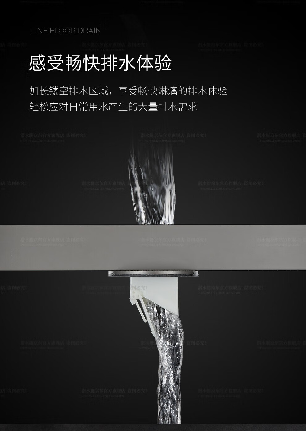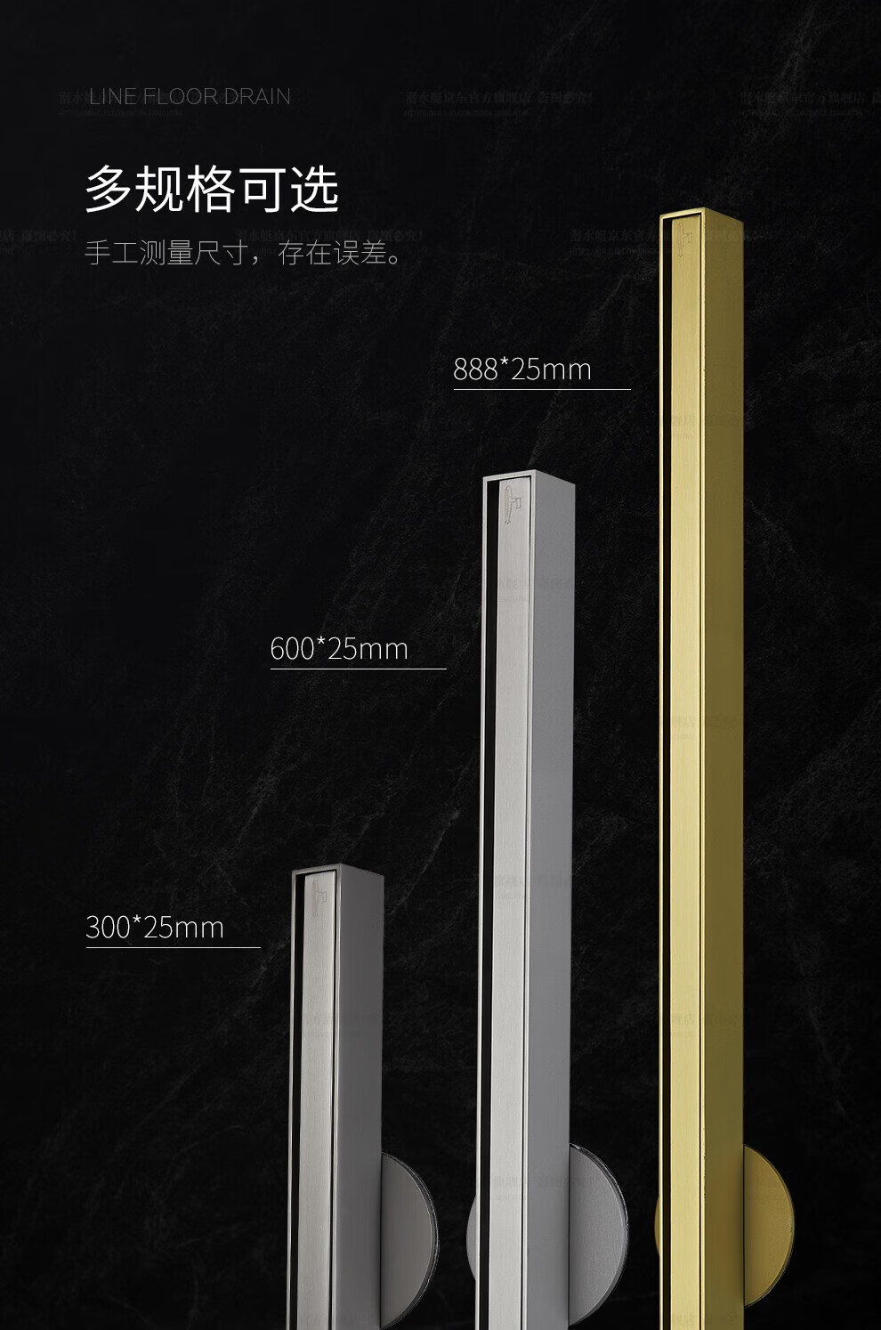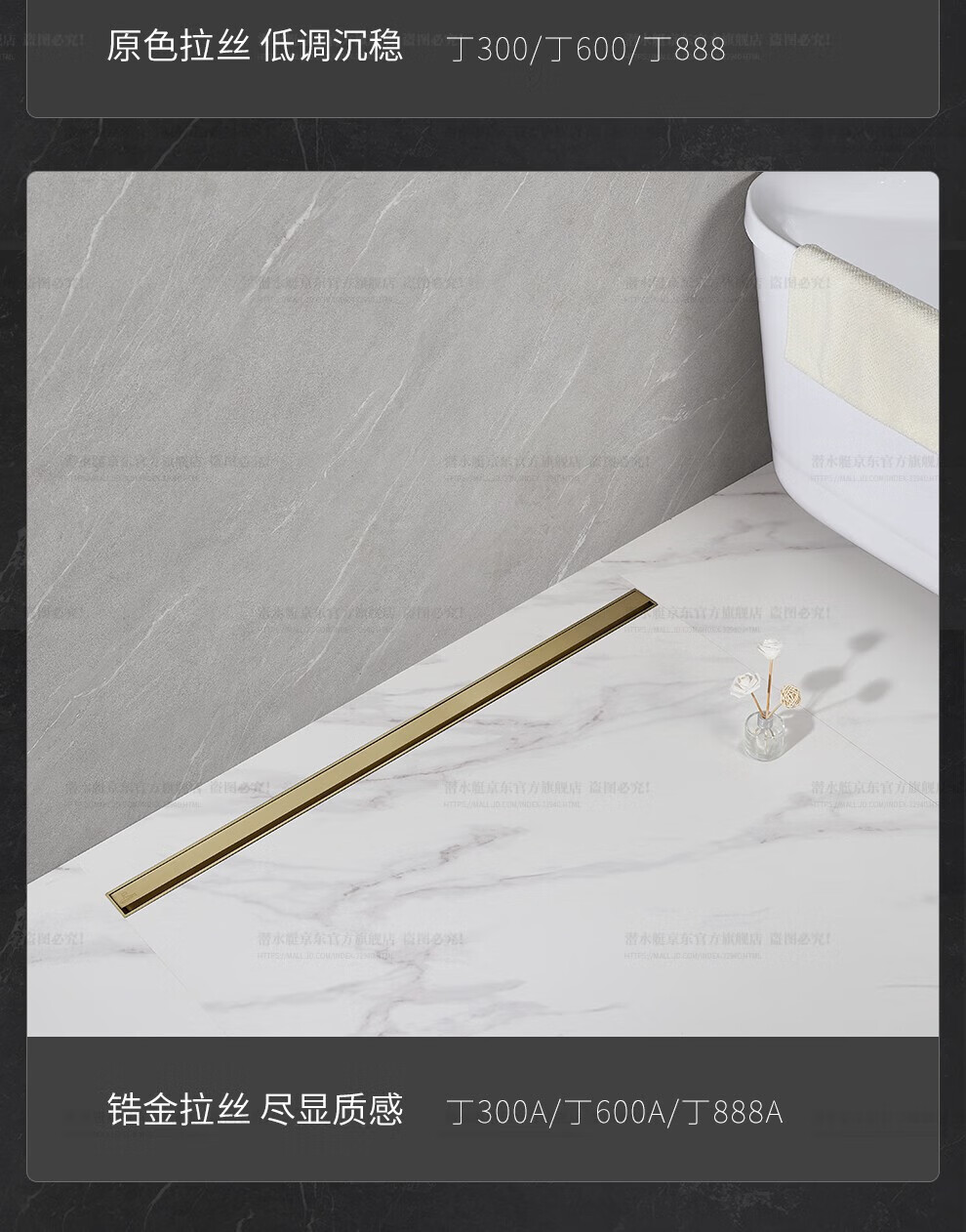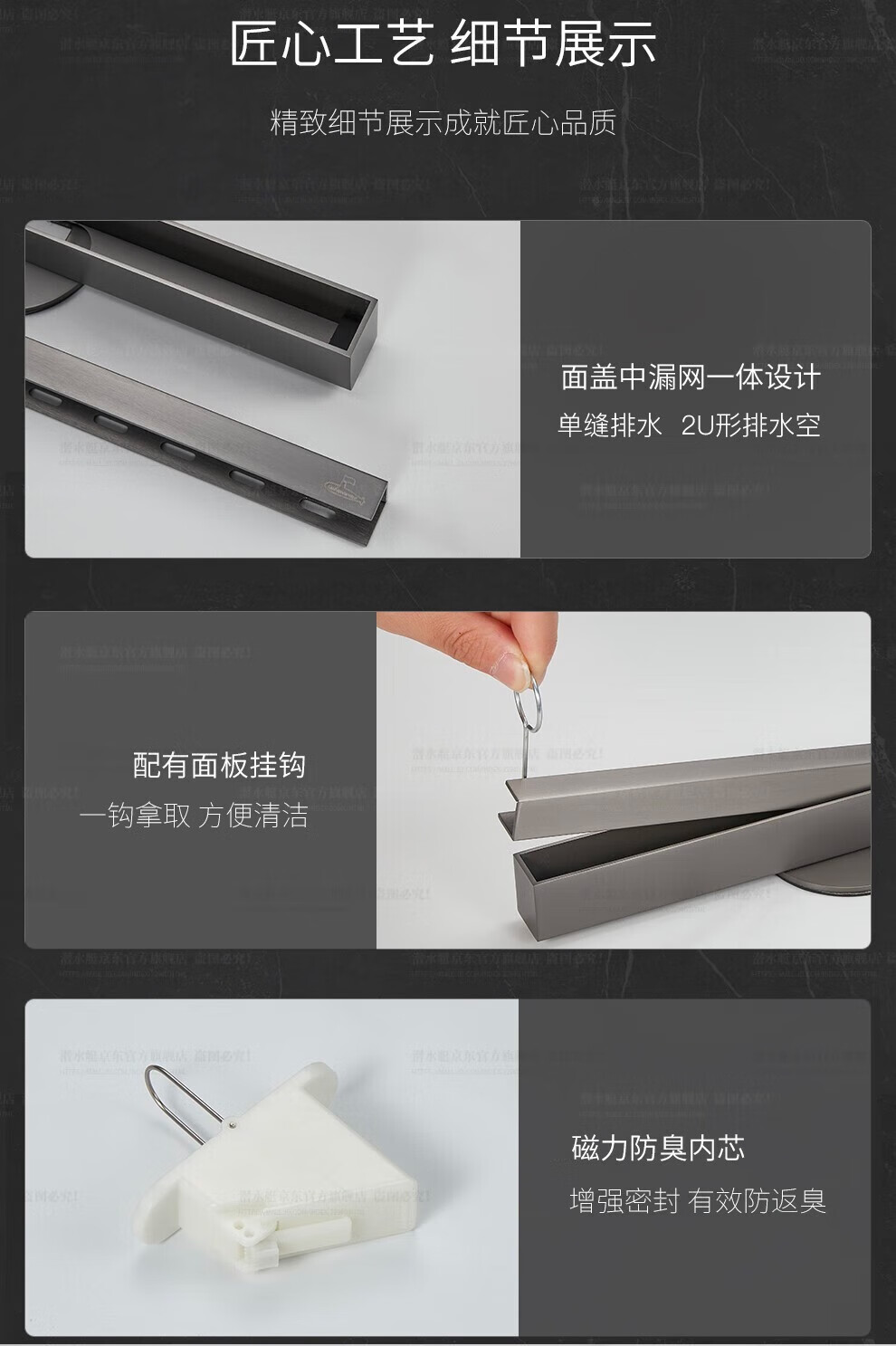 Submarine 600M stainless steel linear extremely narrow strip floor drain gun gray large displacement bathroom shower room high-end rectangular shower floor drain