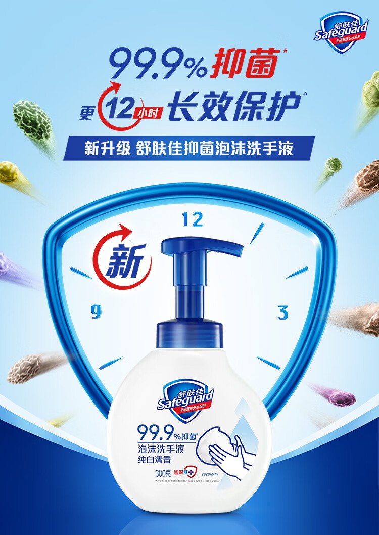 Safeguard antibacterial foam hand sanitizer pure white fragrance 300g healthy antibacterial 99.9% fine foam