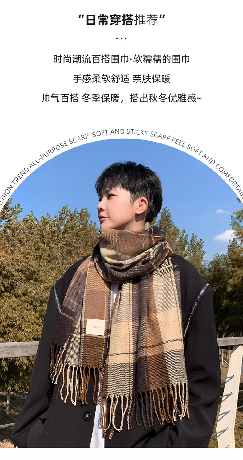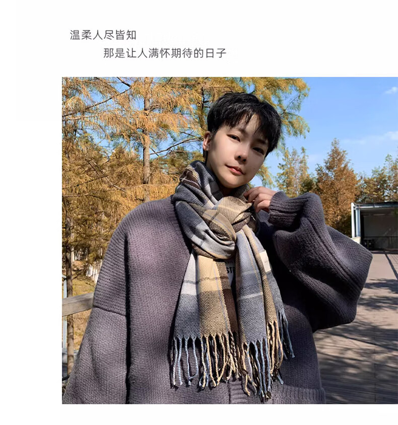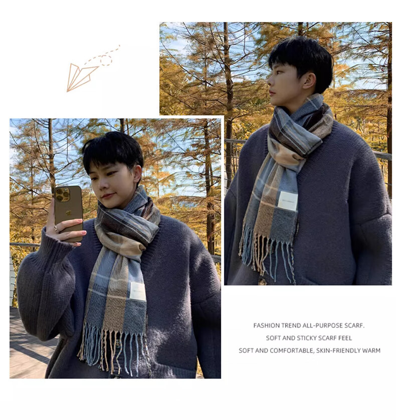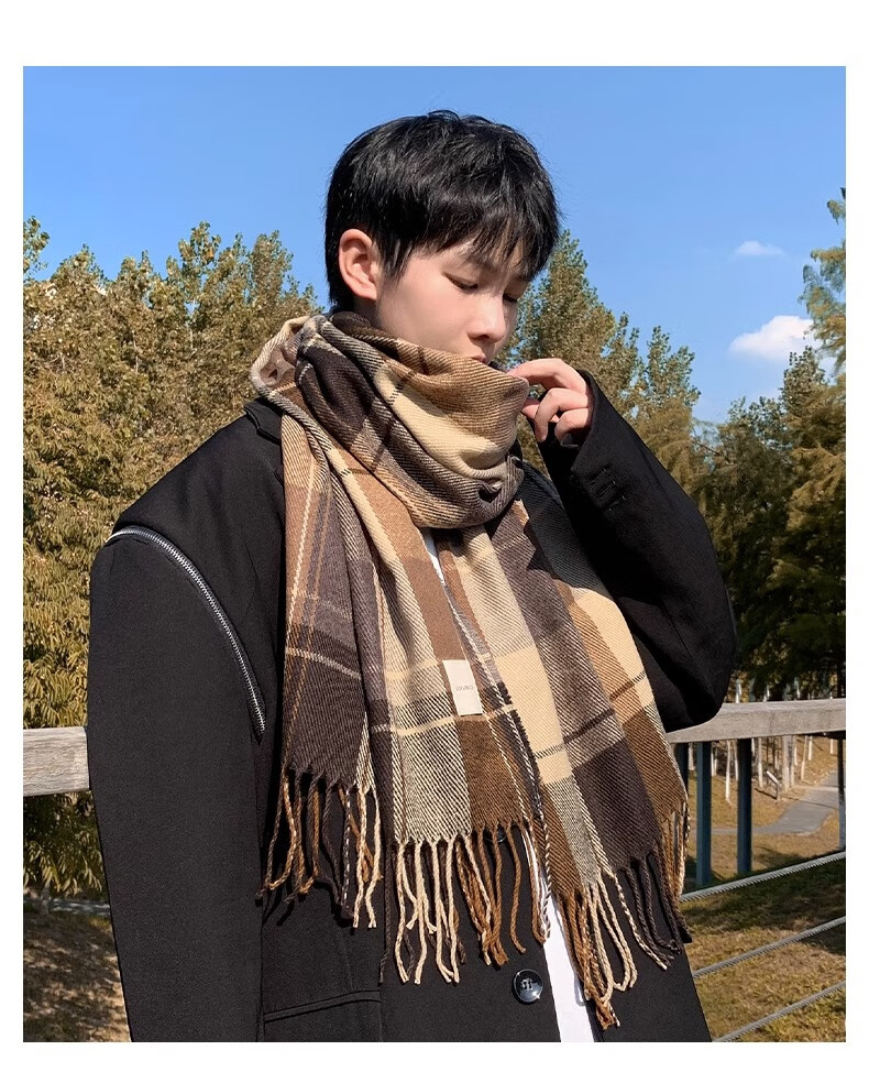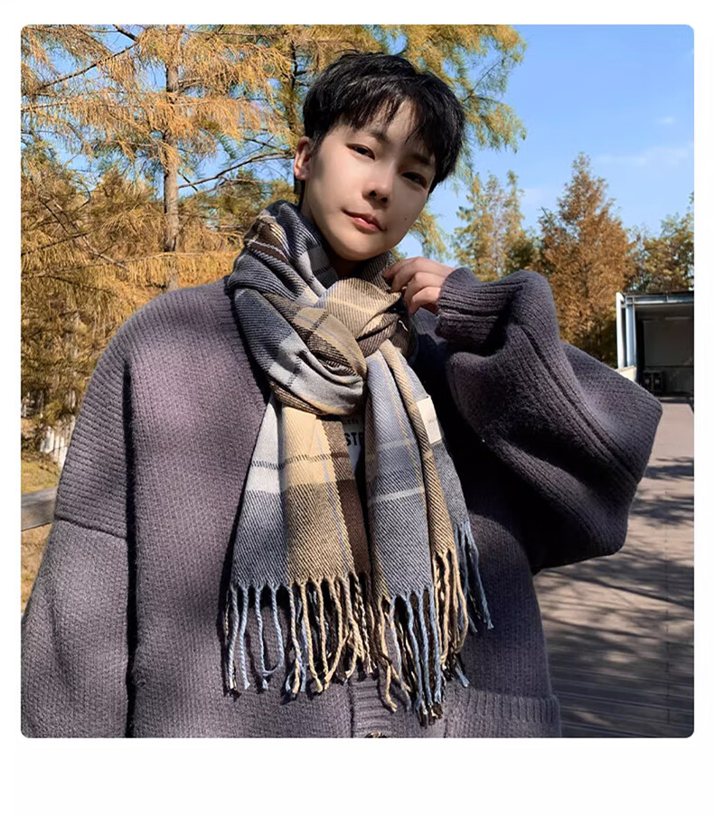 Xue Qianman scarf men's casual simple autumn and winter Korean style fringed plaid scarf fashion versatile warm thickened scarf