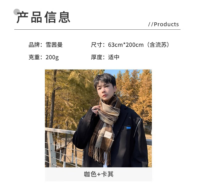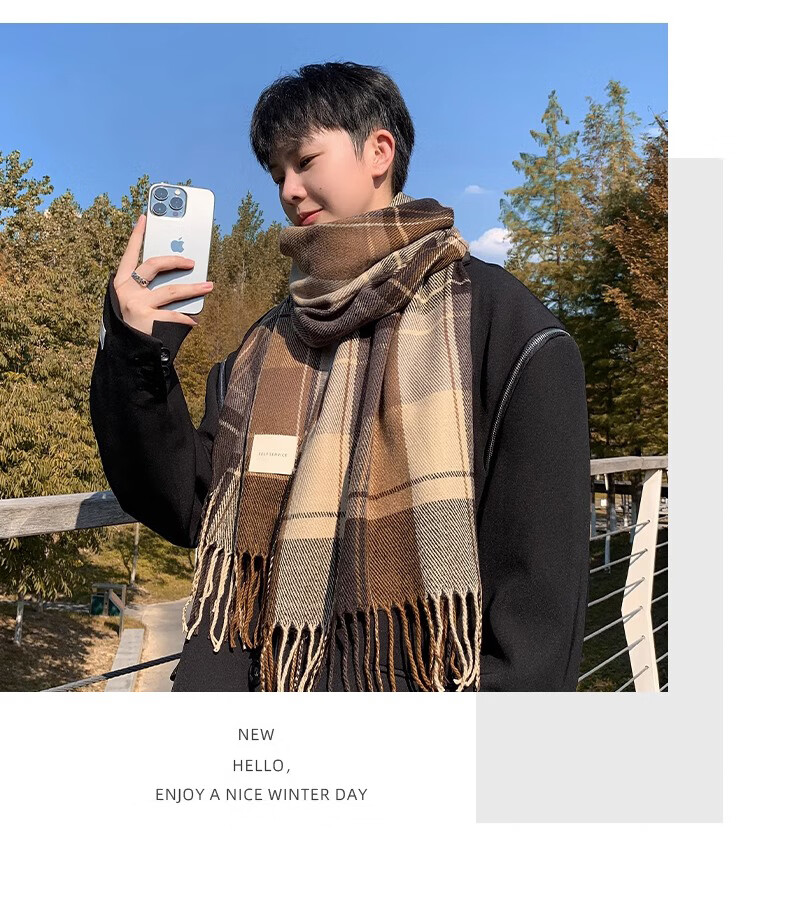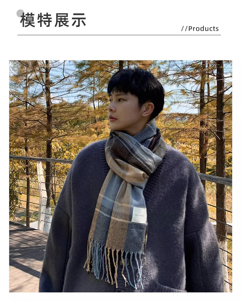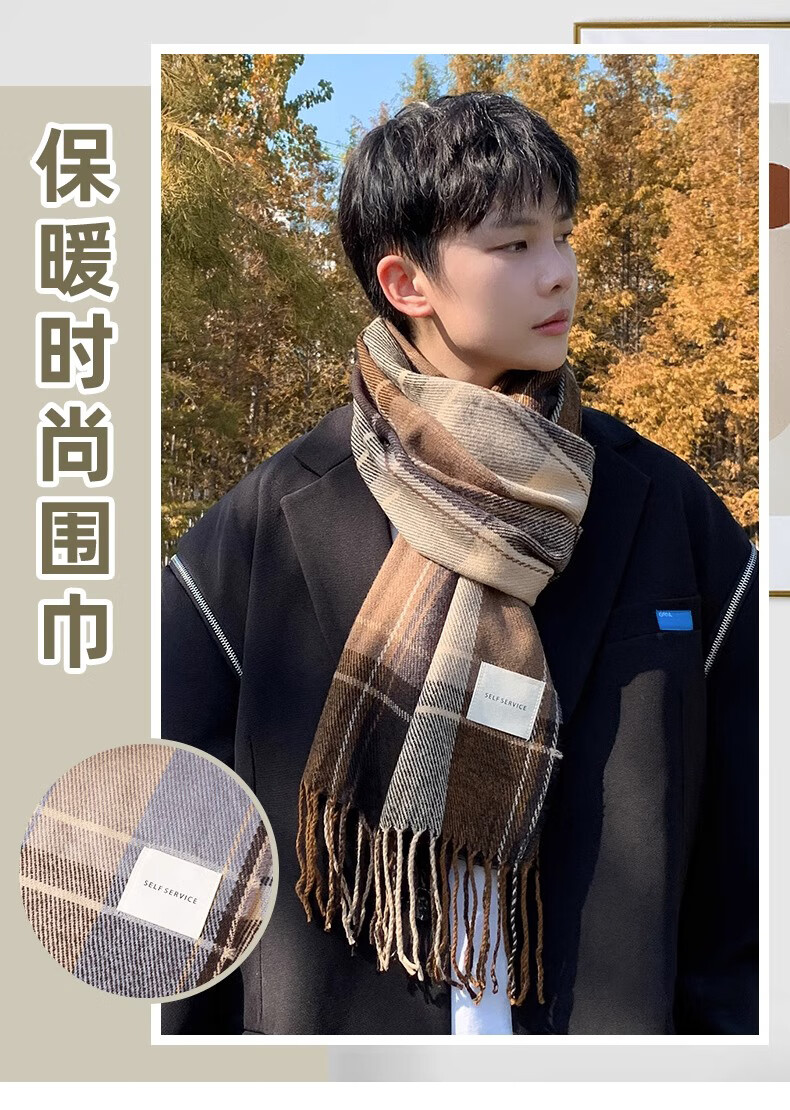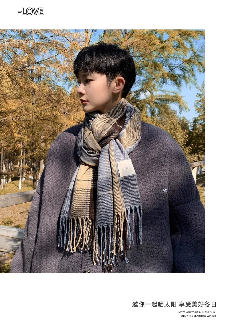 Xue Qianman scarf men's casual simple autumn and winter Korean style fringed plaid scarf fashion versatile warm thickened scarf