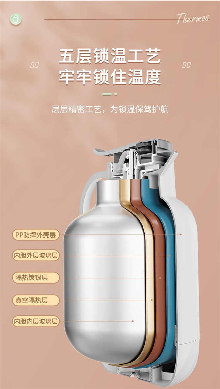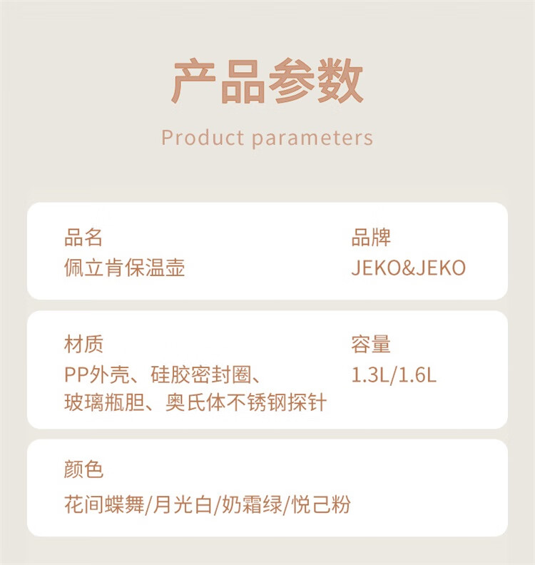 JEKO&JEKO thermos kettle home thermos kettle thermos bottle dormitory student boiling water bottle Pelican 1.3L moonlight white
