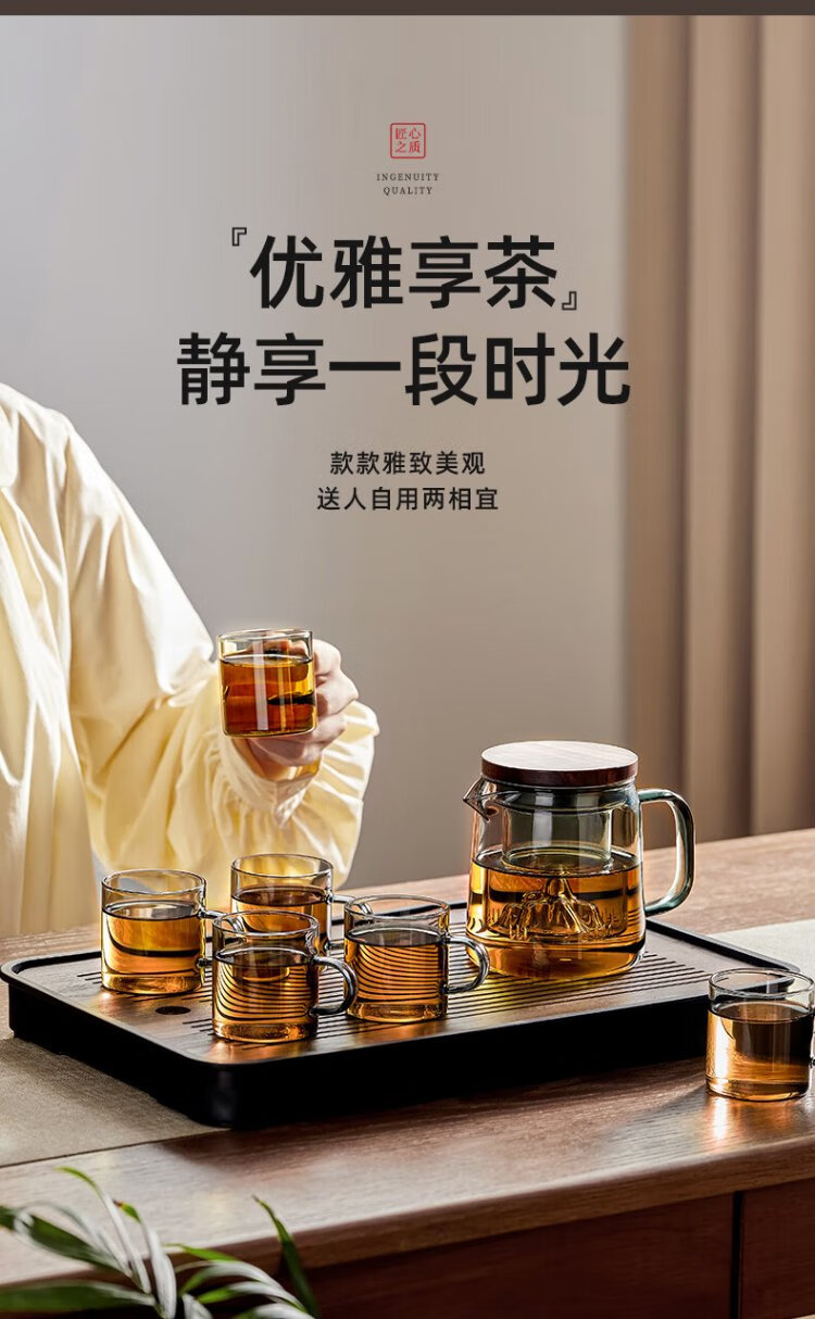 Yi Pot Tea Tea Set Home 2025 New High-End Teapot Teacup Glass Drinking Tea Hospitality Kung Fu Tea Maker Complete Set