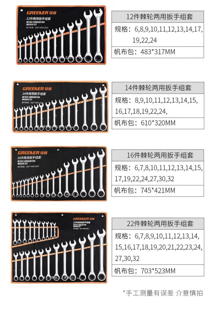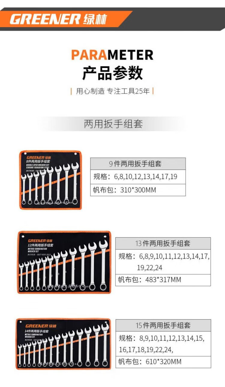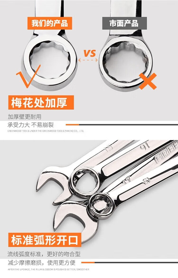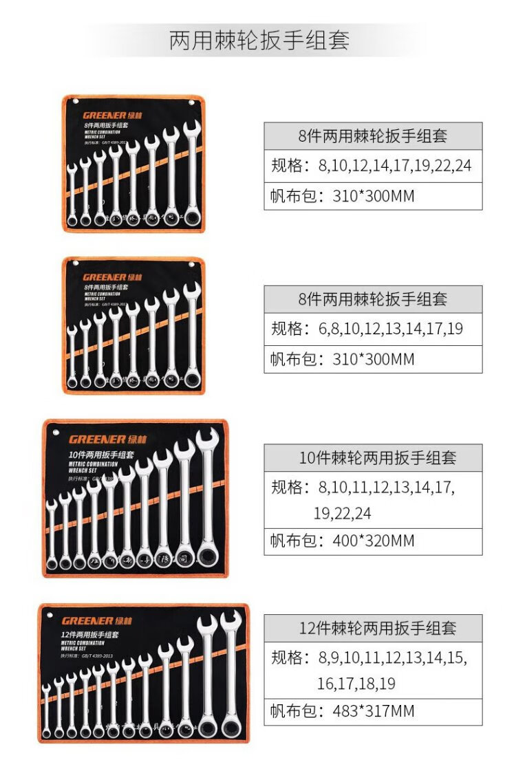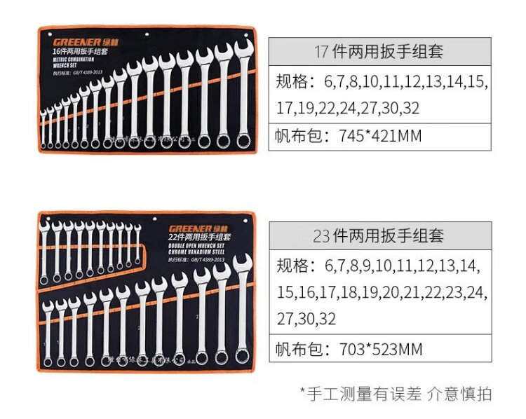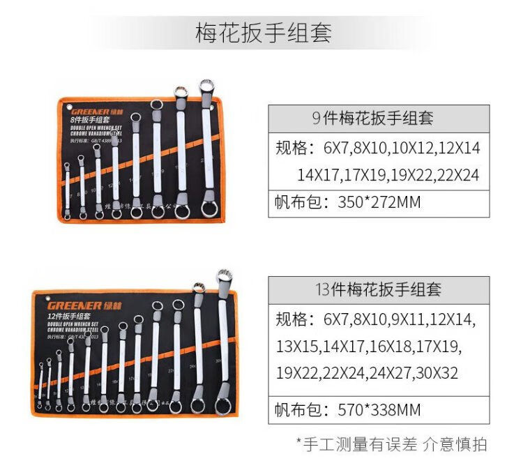 Green forest open-ended plum blossom wrench set 6-14mm 7-piece set dual-purpose wrench labor-saving fast auto repair machinery maintenance tools