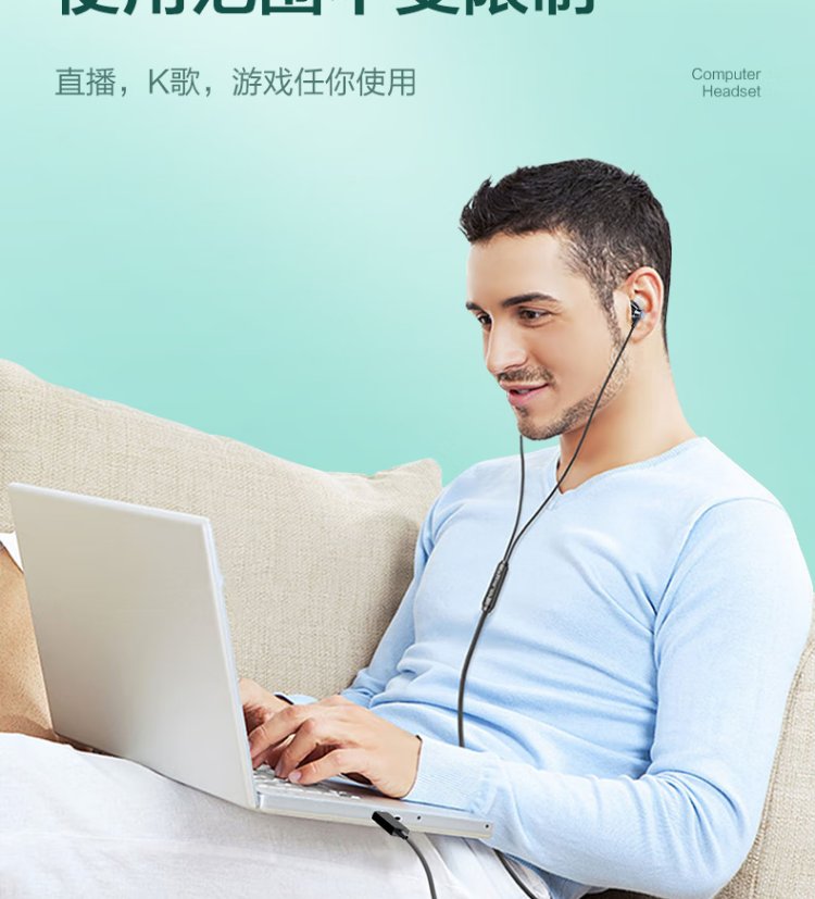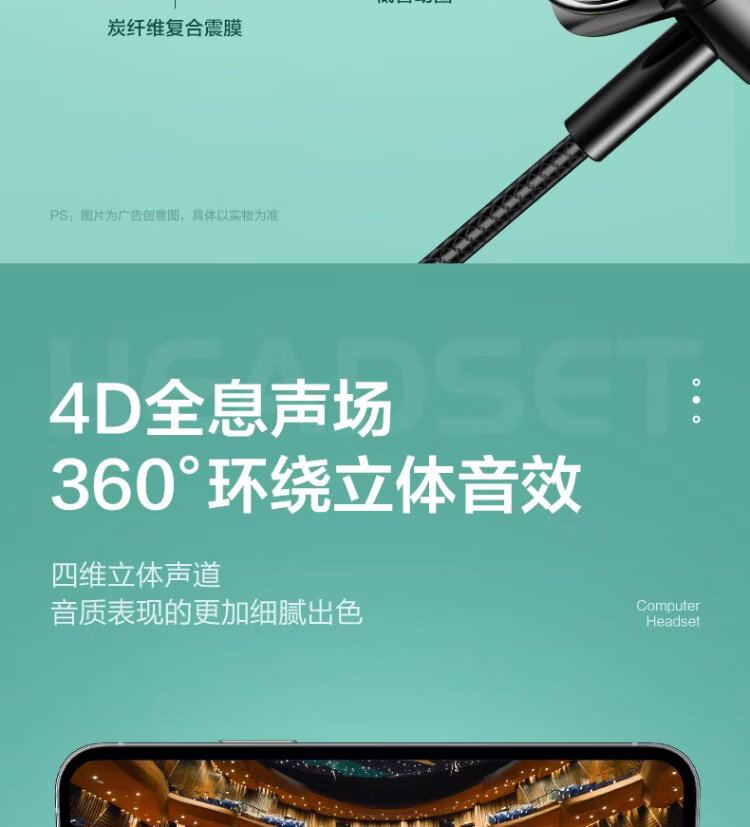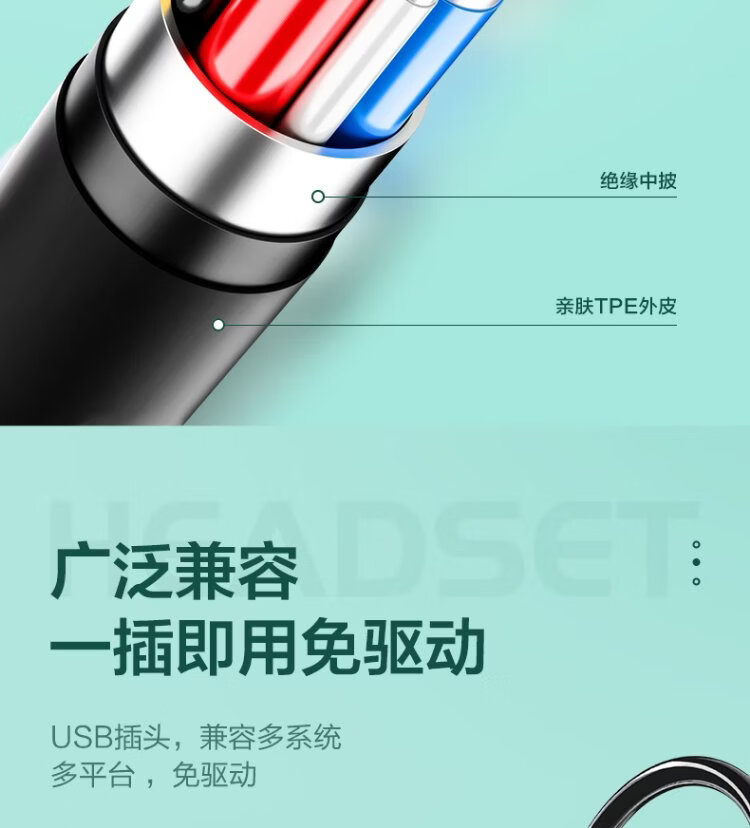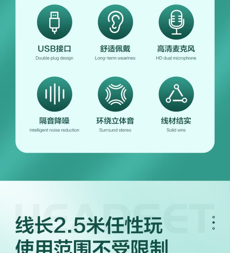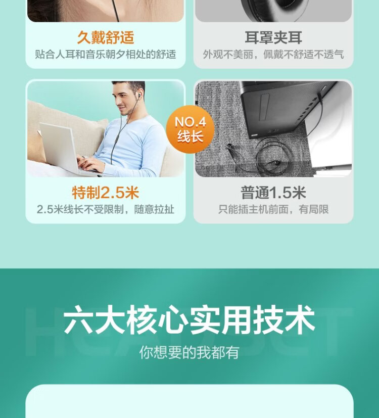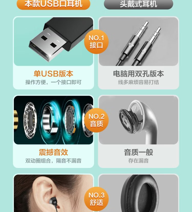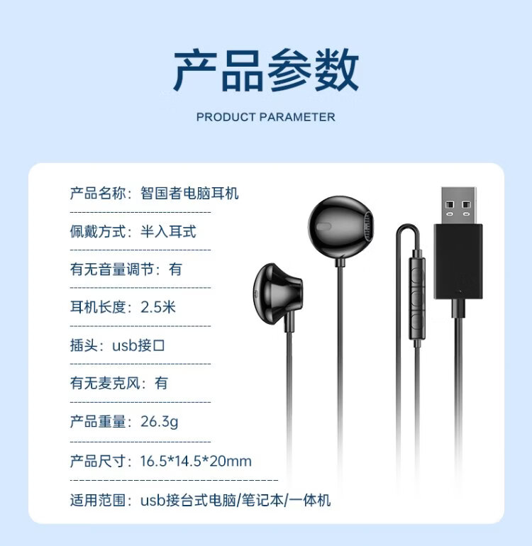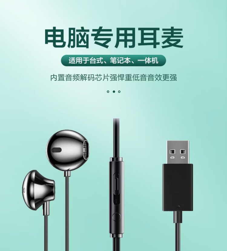 Wise Country HD Microphone丨2.5m long cable USB interface computer headset microphone two-in-one with microphone wired in-ear desktop laptop game e-sports dedicated