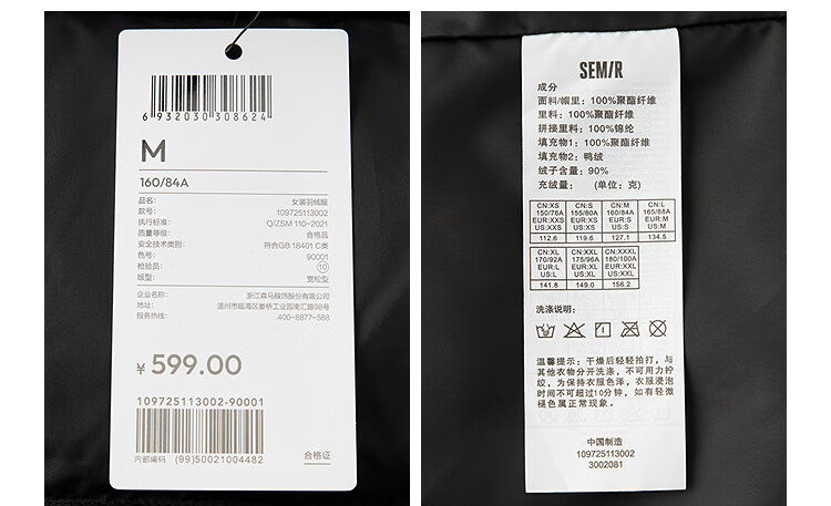 Semir down jacket women's 90 down mid-length slim turtleback silhouette 25 winter commute thick coat 109725113002