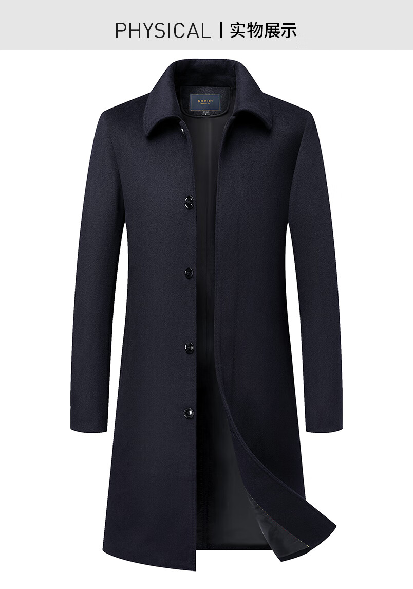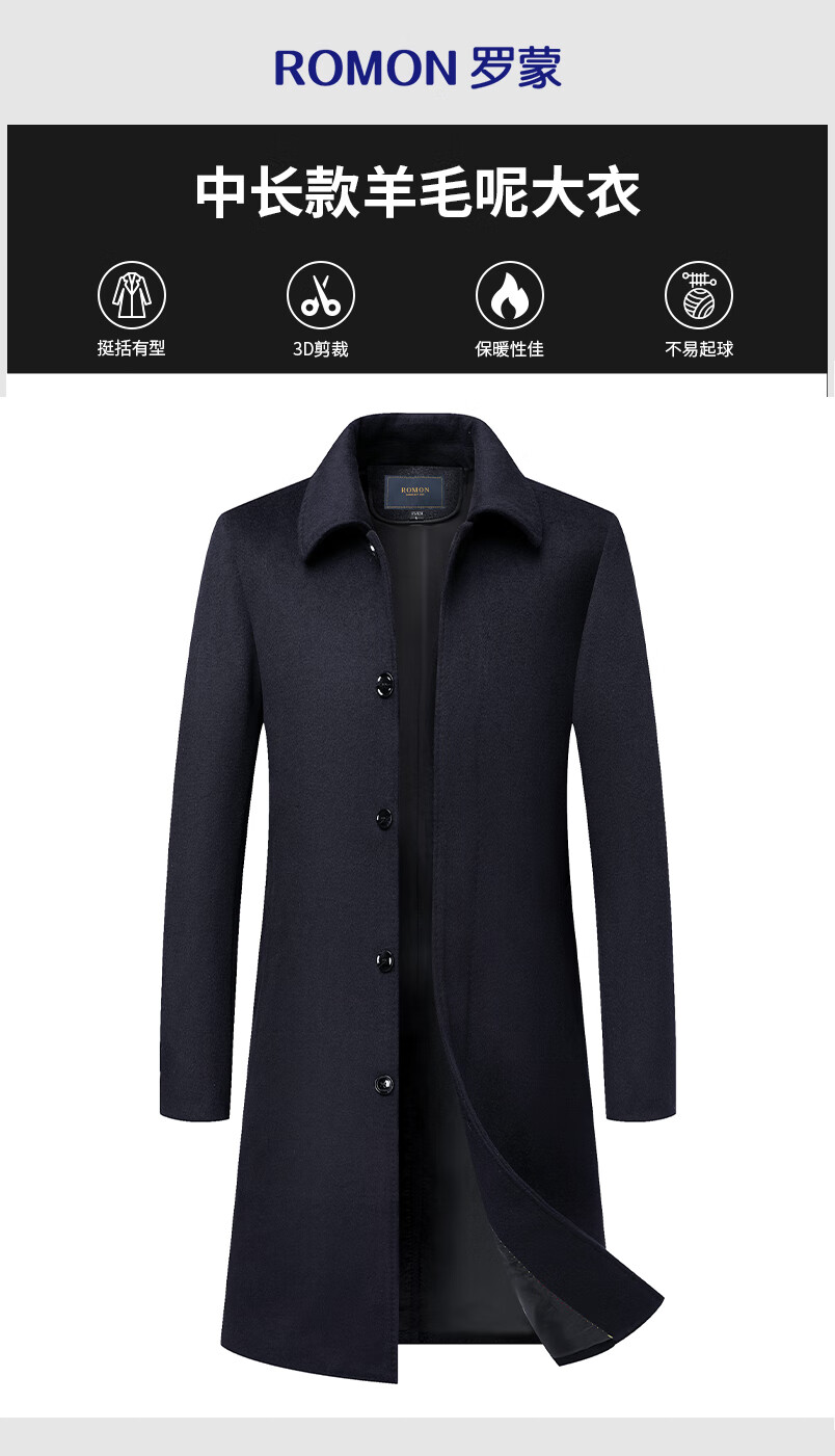 Romon sheep wool woolen coat men's autumn and winter mid-length coat casual warm daddy woolen coat