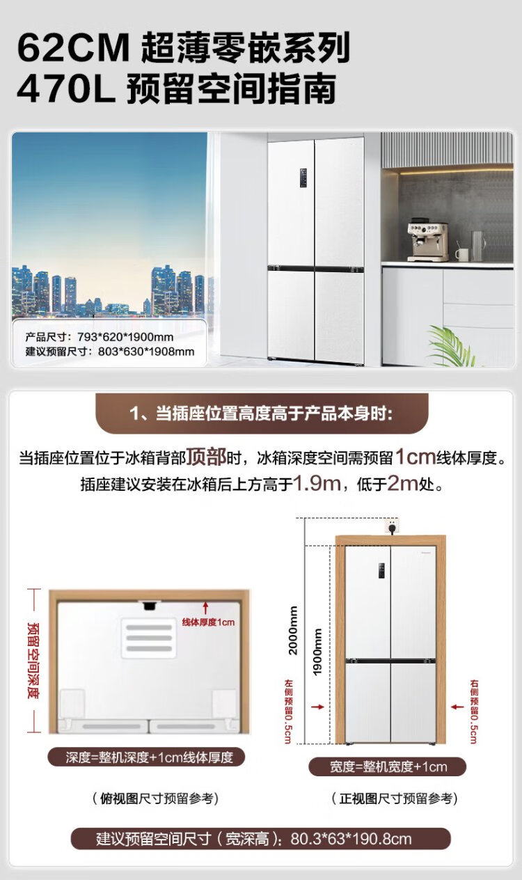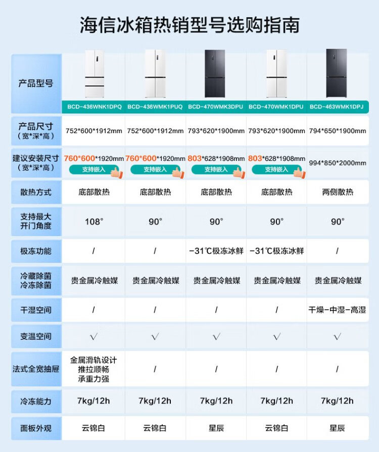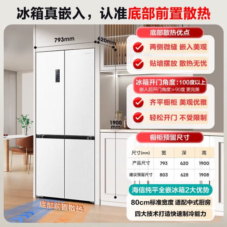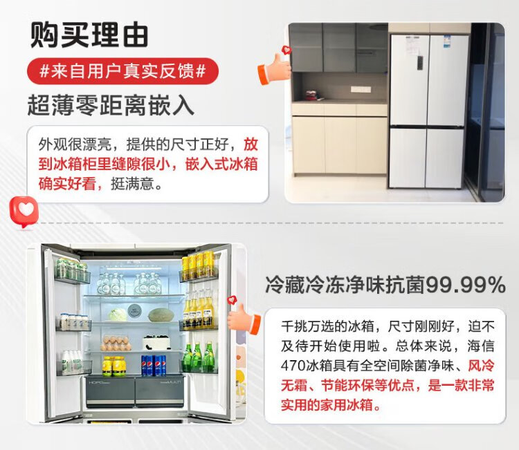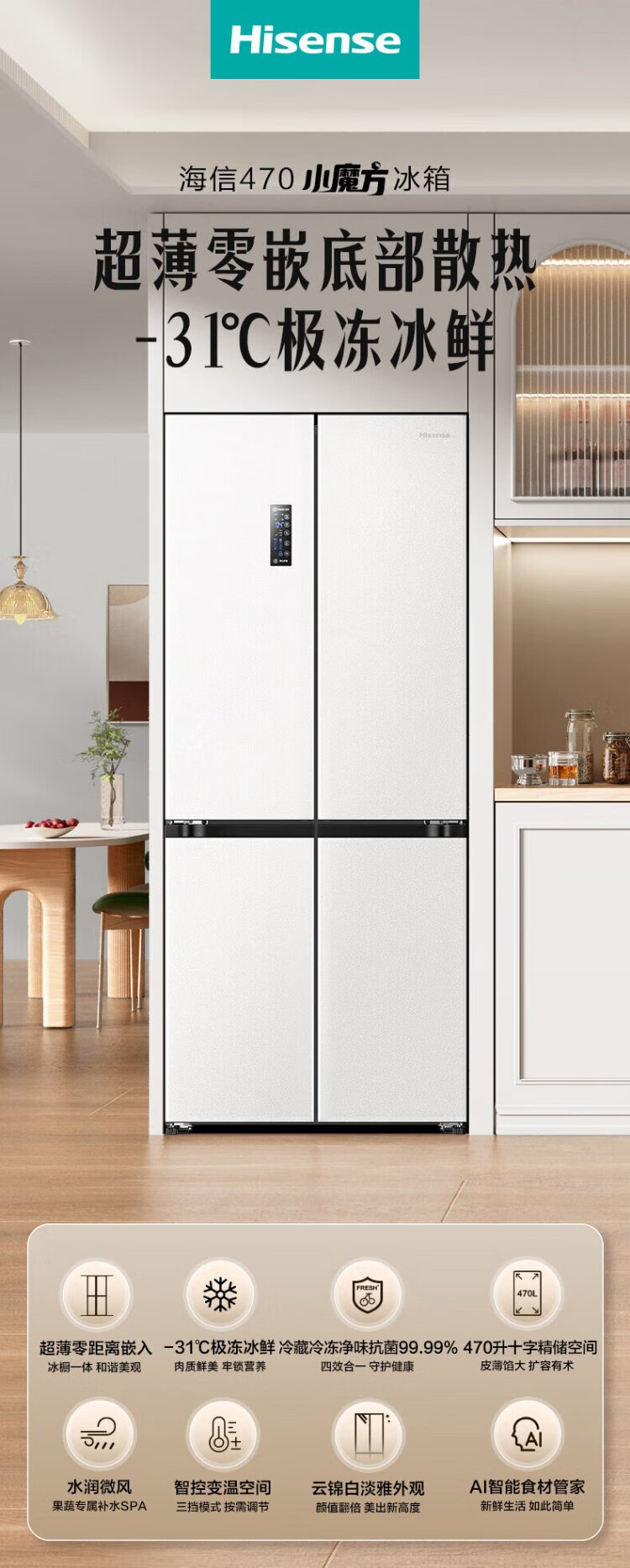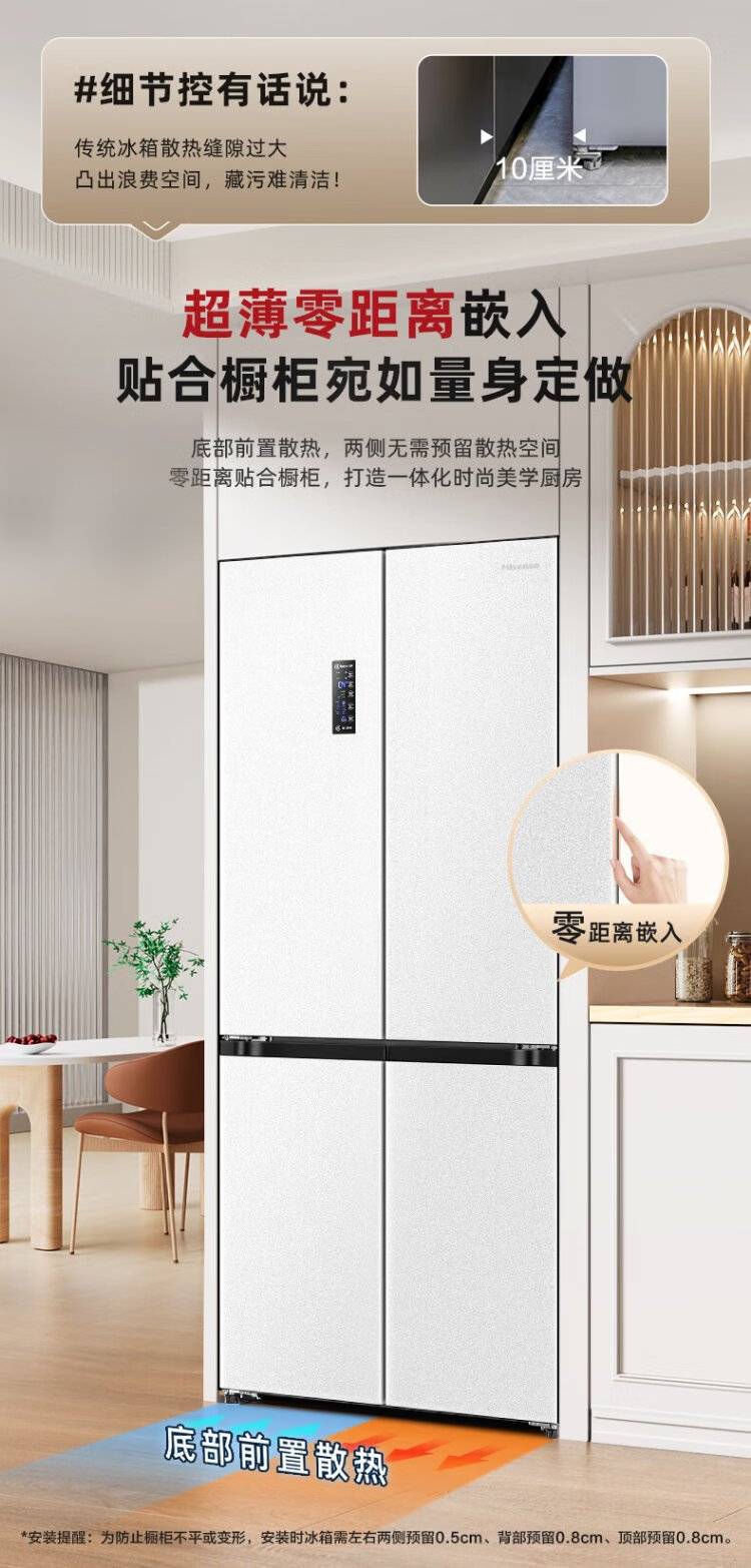 Hisense 470 Small Rubik's Cube Refrigerator four-door ultra-thin zero-embedded refrigerator household first-class energy efficiency dual-frequency home appliances national subsidy 20% trade-in BCD-470WMK1DPU