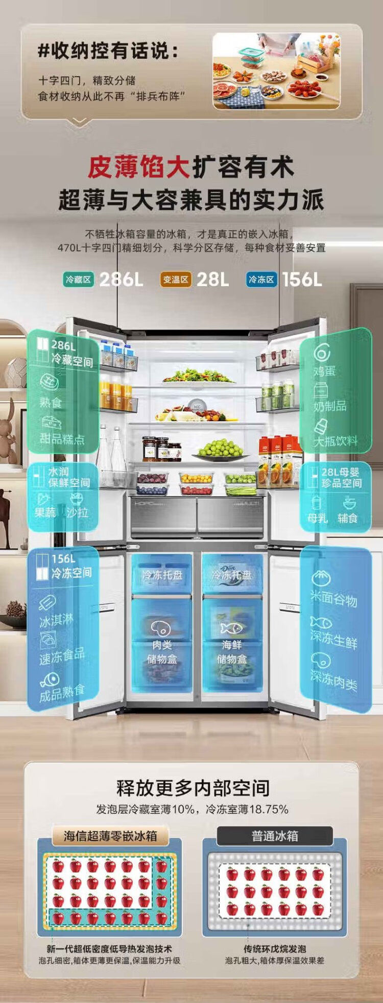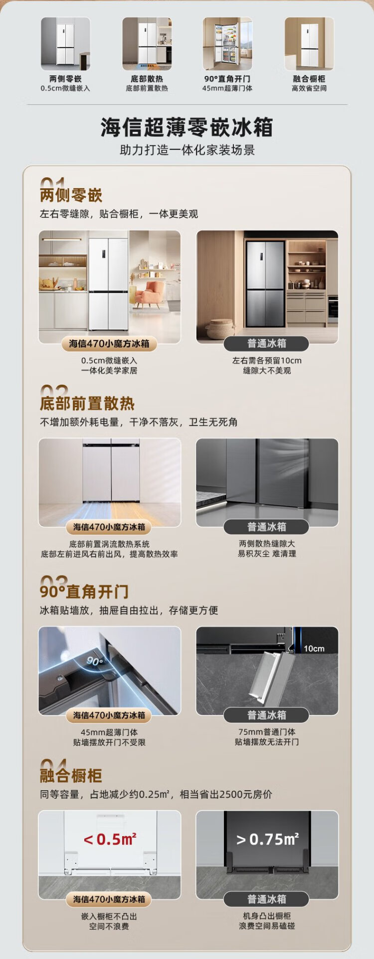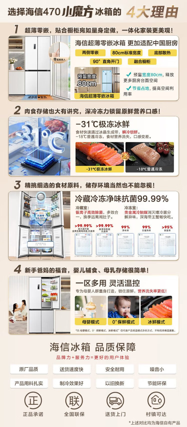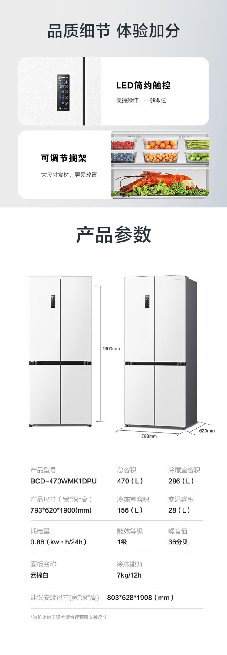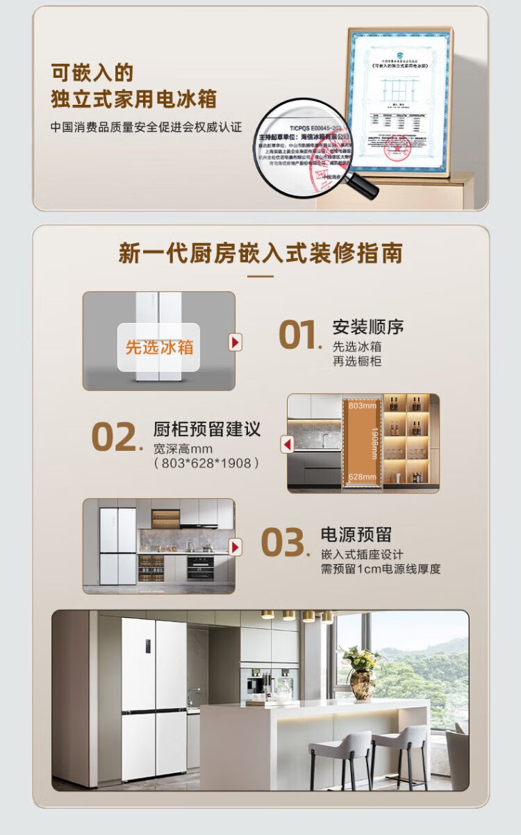 Hisense 470 Small Rubik's Cube Refrigerator four-door ultra-thin zero-embedded refrigerator household first-class energy efficiency dual-frequency home appliances national subsidy 20% trade-in BCD-470WMK1DPU