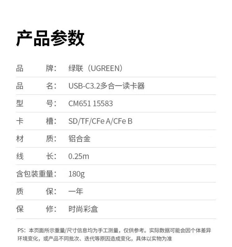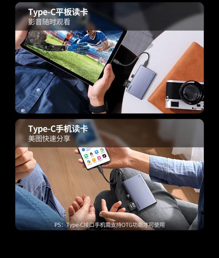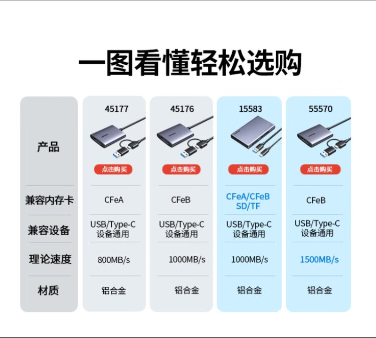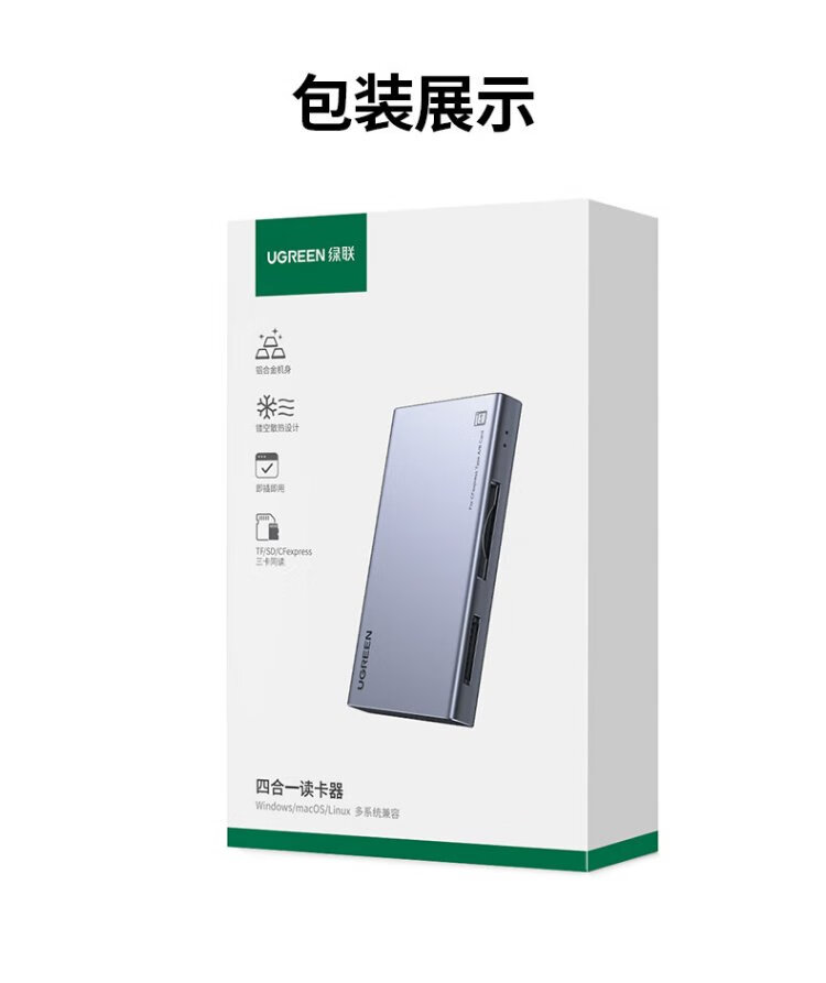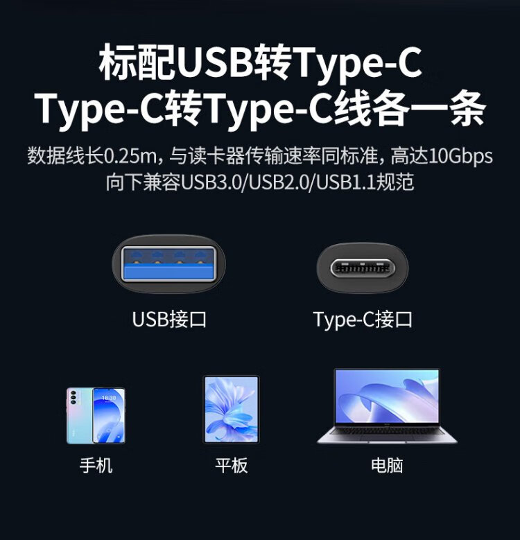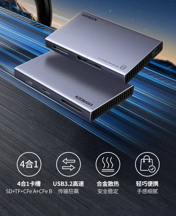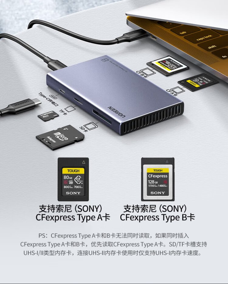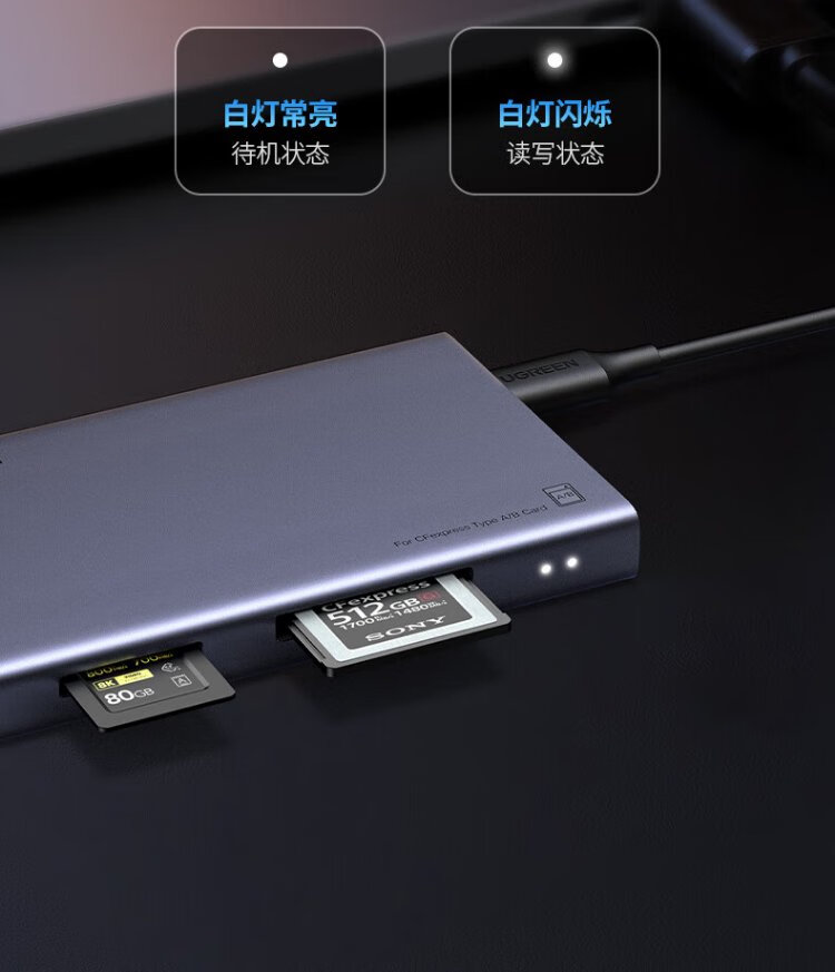 绿联USB/Type-C读卡器3.2高速 支持索尼佳能相机cfeA/cfeB/SD/TF卡手机无人机 适用CFexpressA/B内存卡