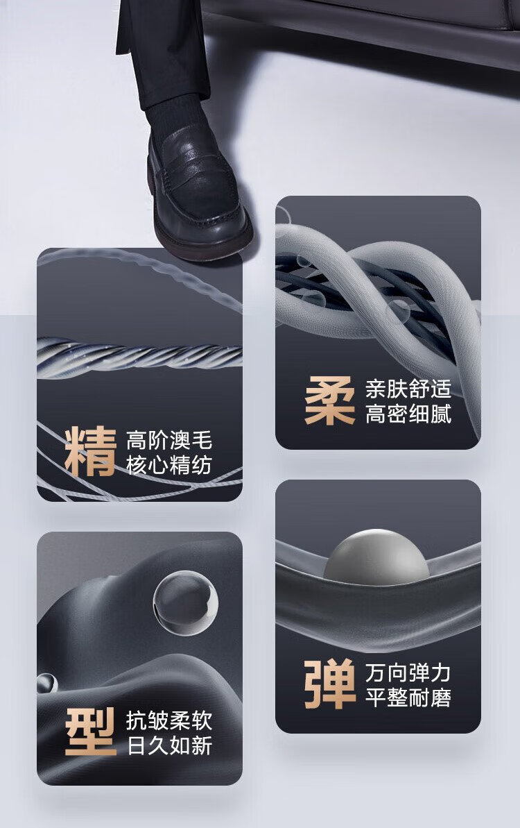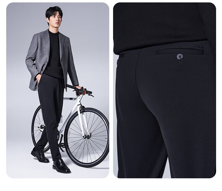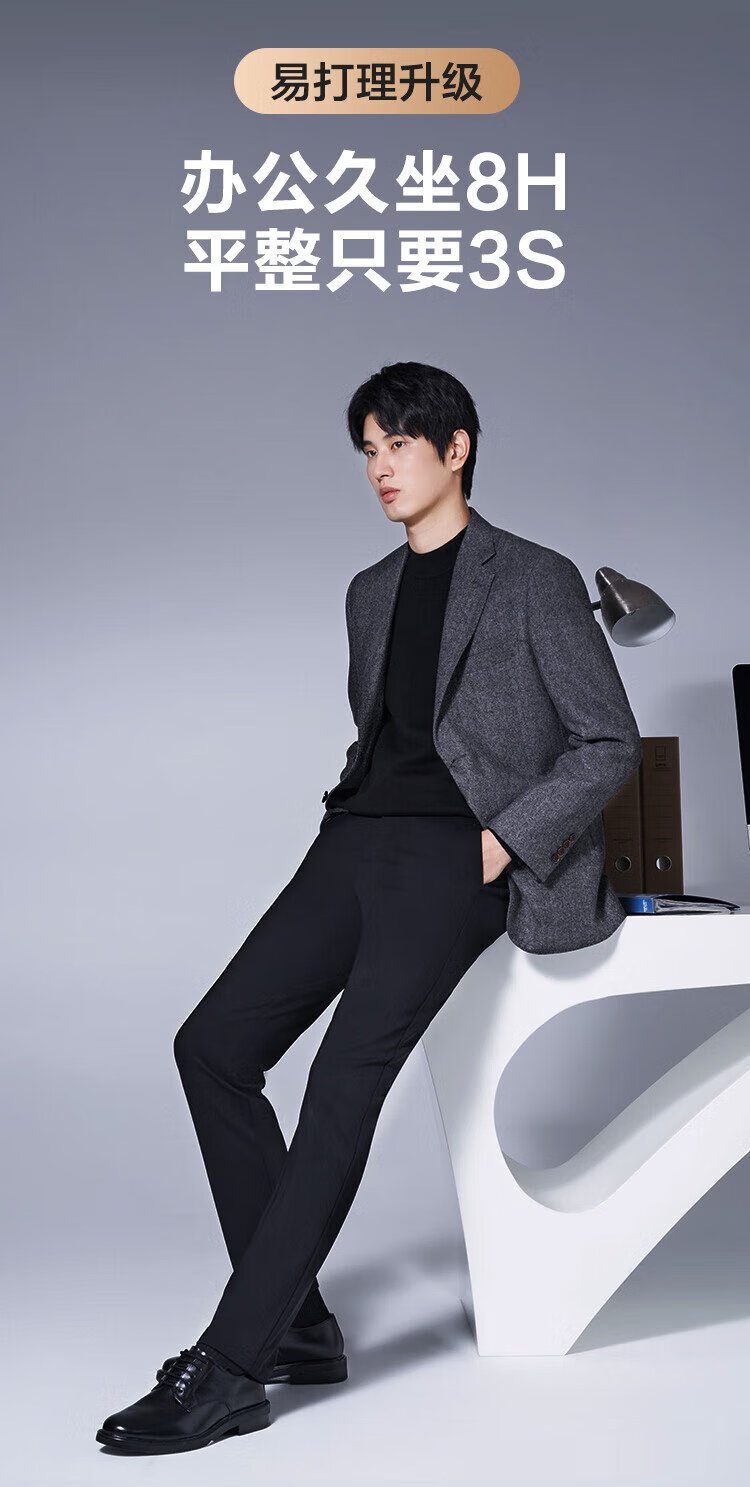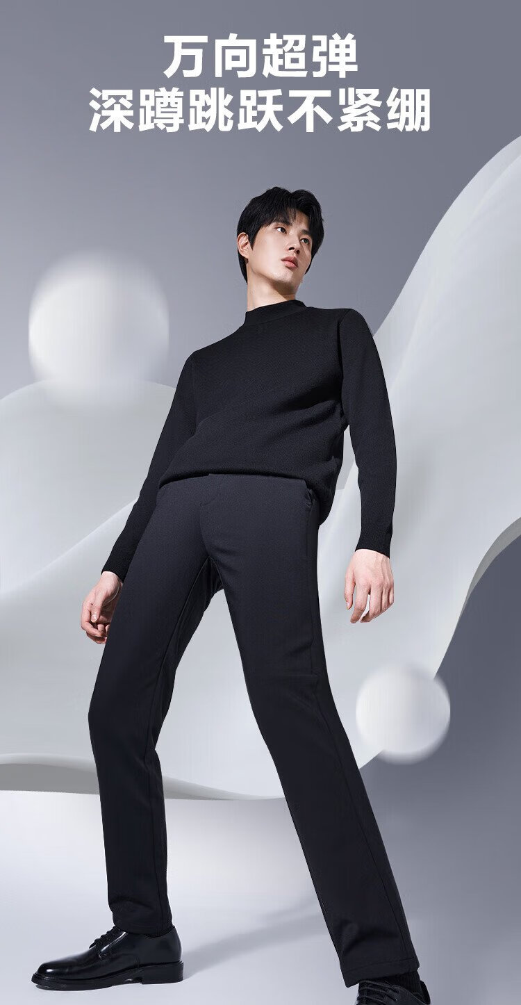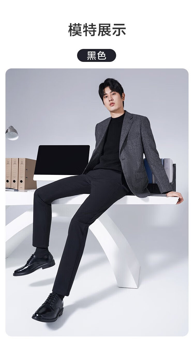 Made in Tokyo, Australian wool elastic anti-wrinkle casual pants for men plus velvet business straight long pants for men New Year's Day and Valentine's Day black 33