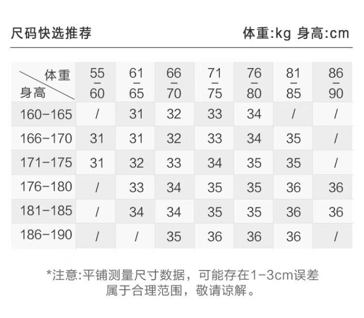 China (cm) 160-165/84-86 165-170 / 88-90 167-172 / 92-96 168-173 / 98-102 170-176 / 106-110
