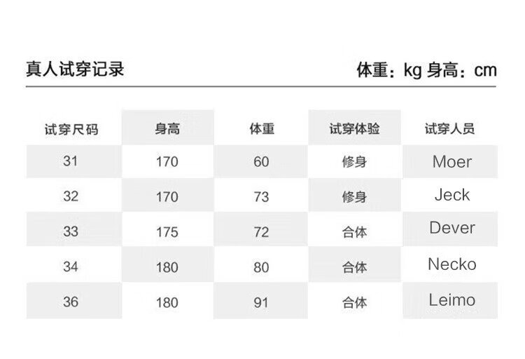 China (cm) 165 / 88-90 170 / 96-98 175 / 108-110 180 / 118-122 185 / 126-130