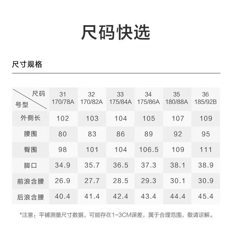Outseam (cm) 99 cm 101.5 cm 104 cm 106.5 cm 109 cm
