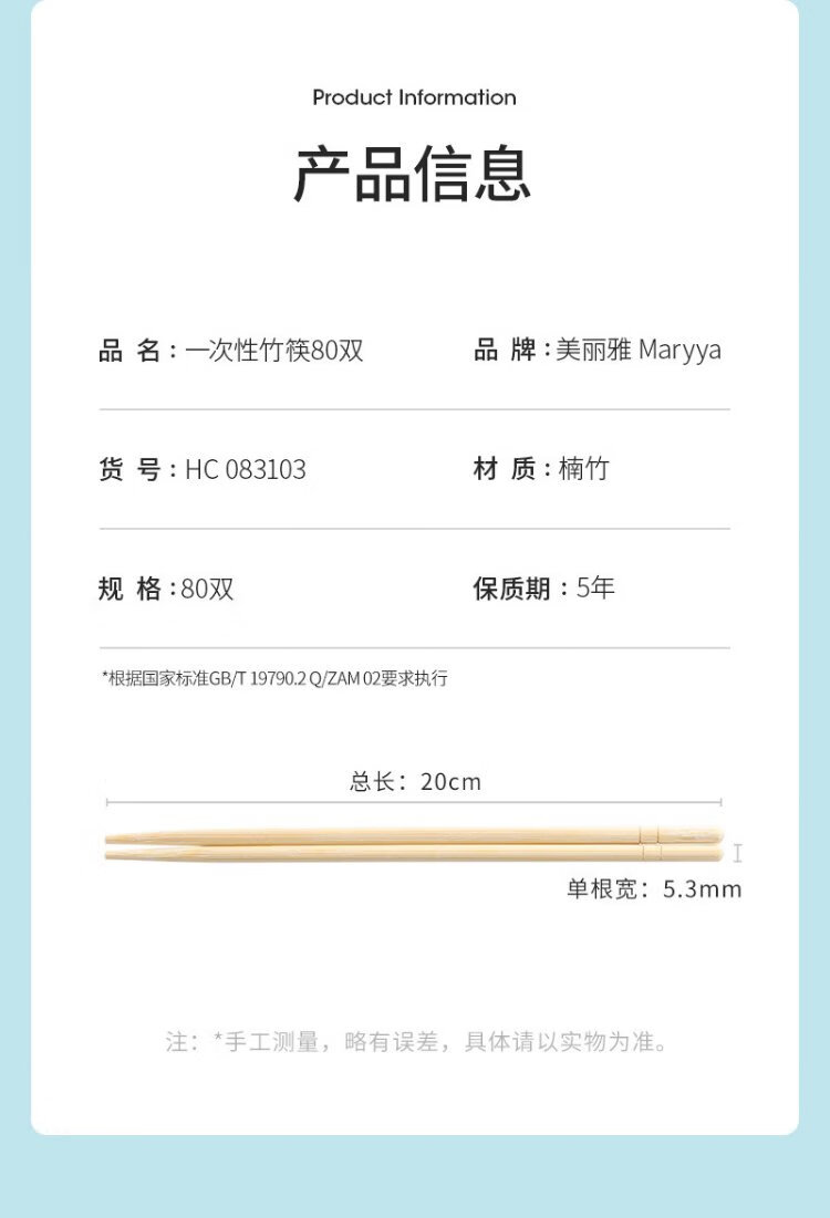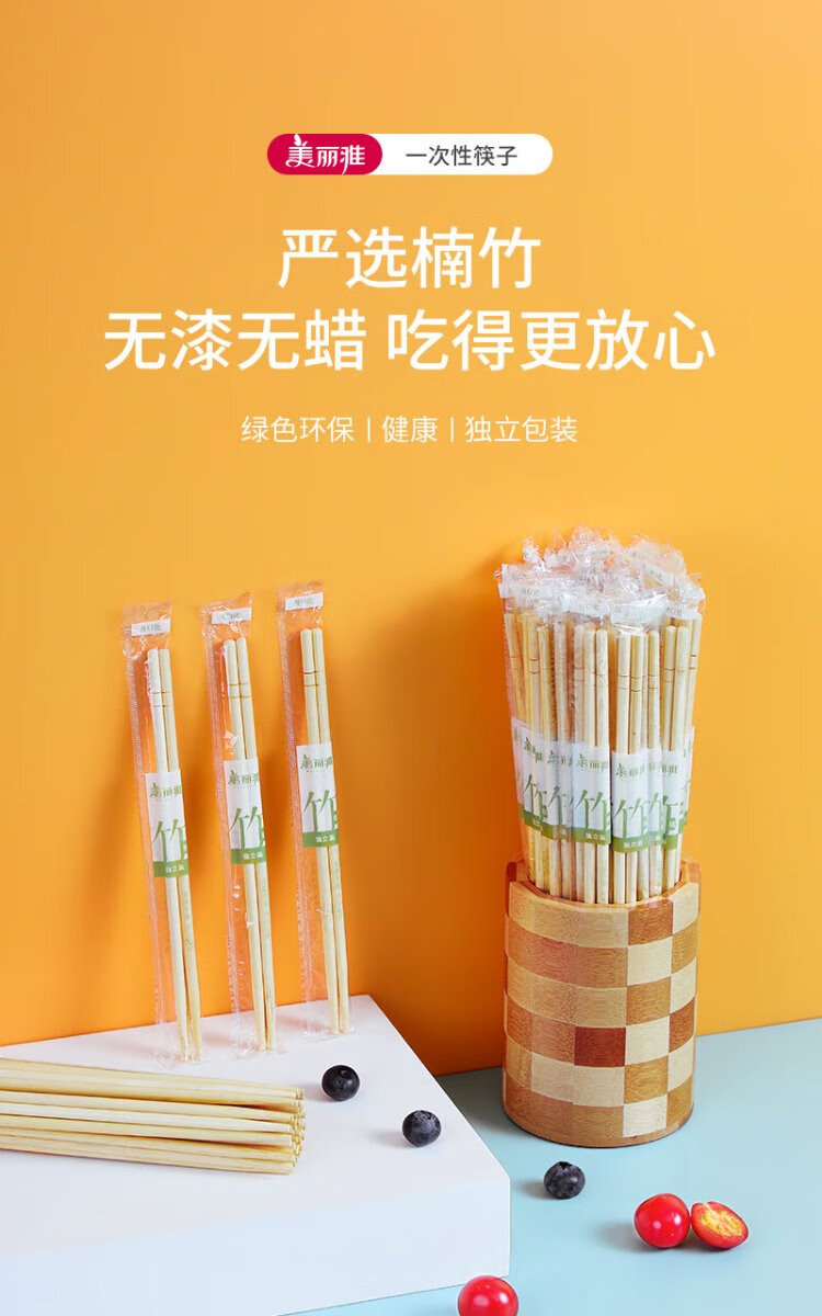 Meiya Disposable Chopsticks Round Head 80 Pairs Independently Packaged Home Camping Takeout Tableware Hygienic Bamboo Chopsticks Convenient Chopsticks