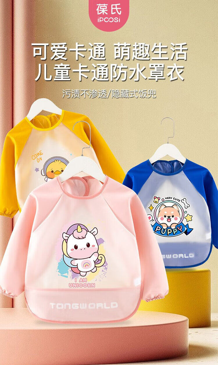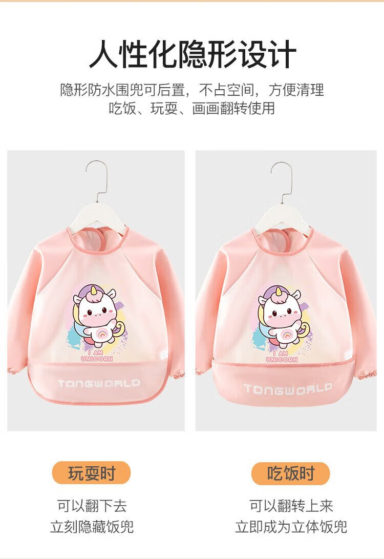 Bao's splash-proof clothing baby eating smock children's rice pocket bib waterproof anti-dirty apron autumn and winter long-sleeved reverse dressing - pink