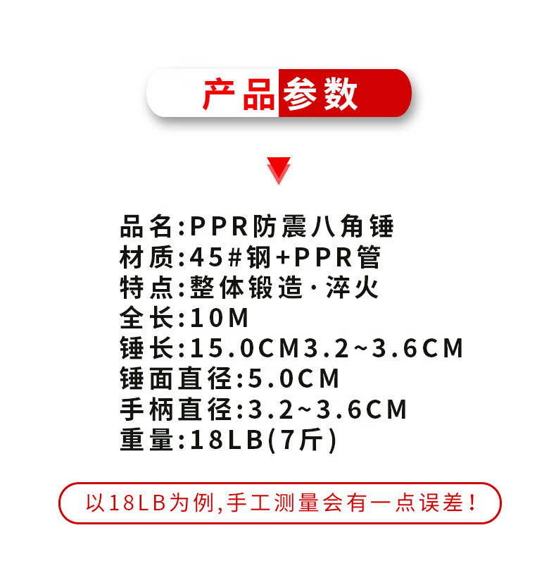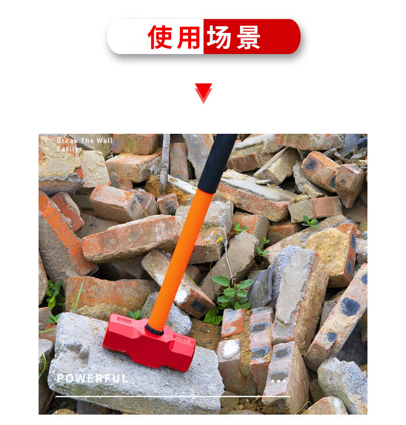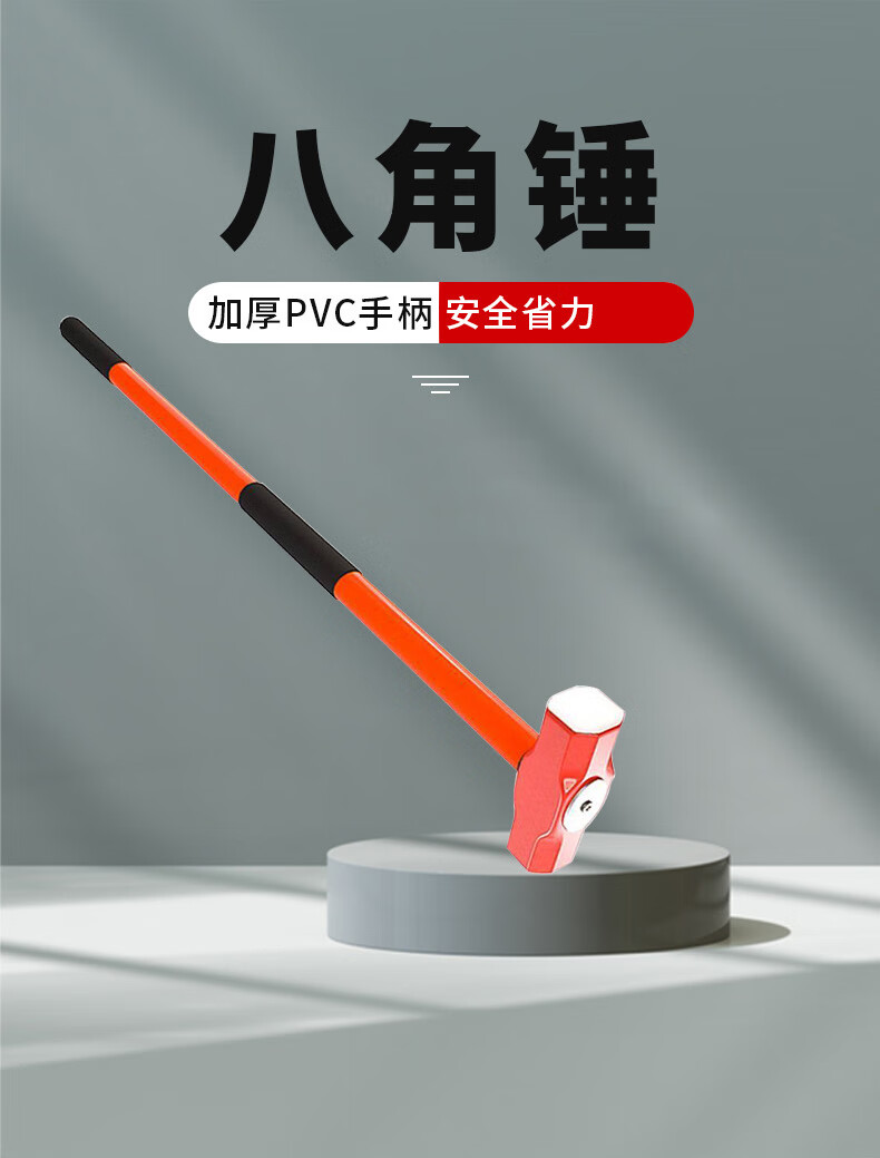 Yuanqiu large octagonal hammer long handle decoration large hammer hammer tire iron hammer heavy wall smashing wall smashing hammer demolition fire hammer 10 pound octagonal hammer with handle