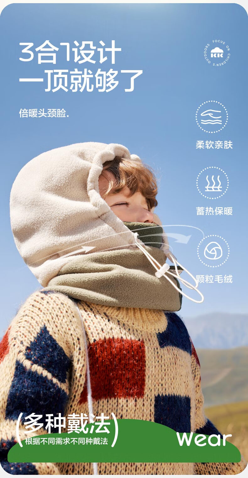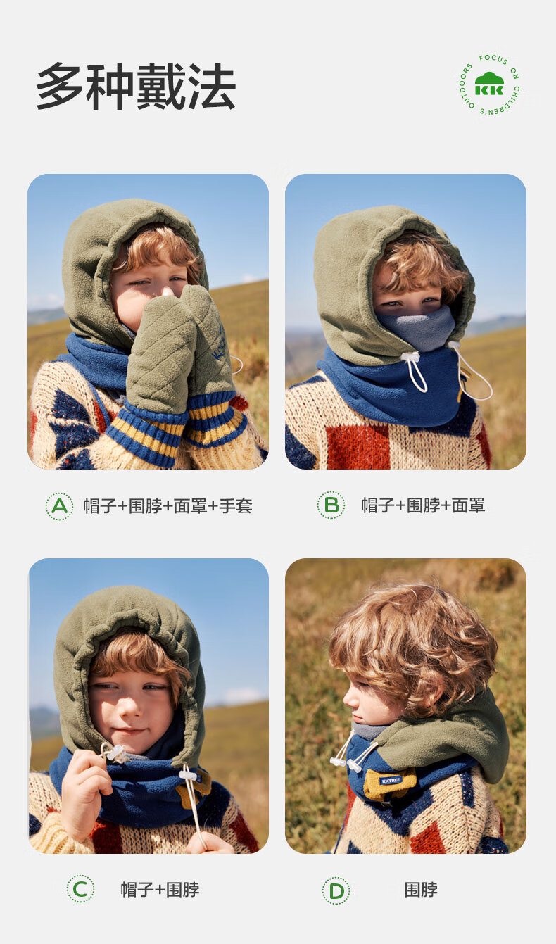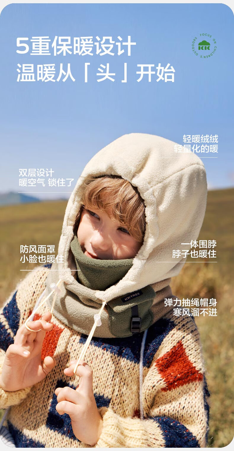 Kocotreekk tree children's hat autumn and winter warm and windproof girls and boys thickened simple pullover and scarf one-piece hat