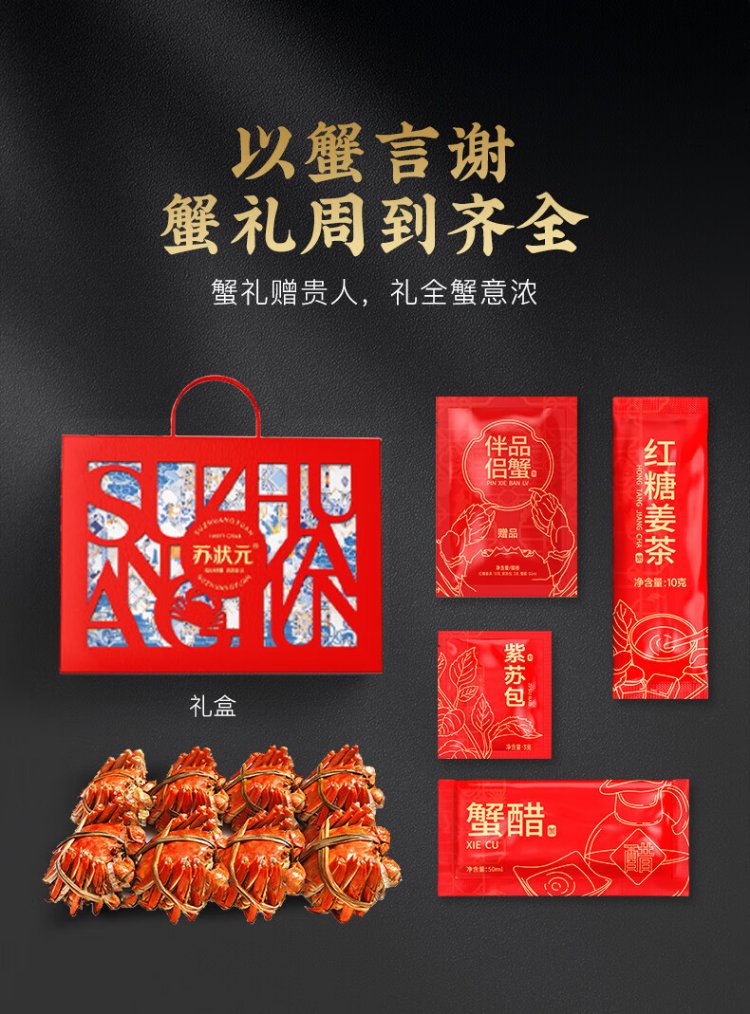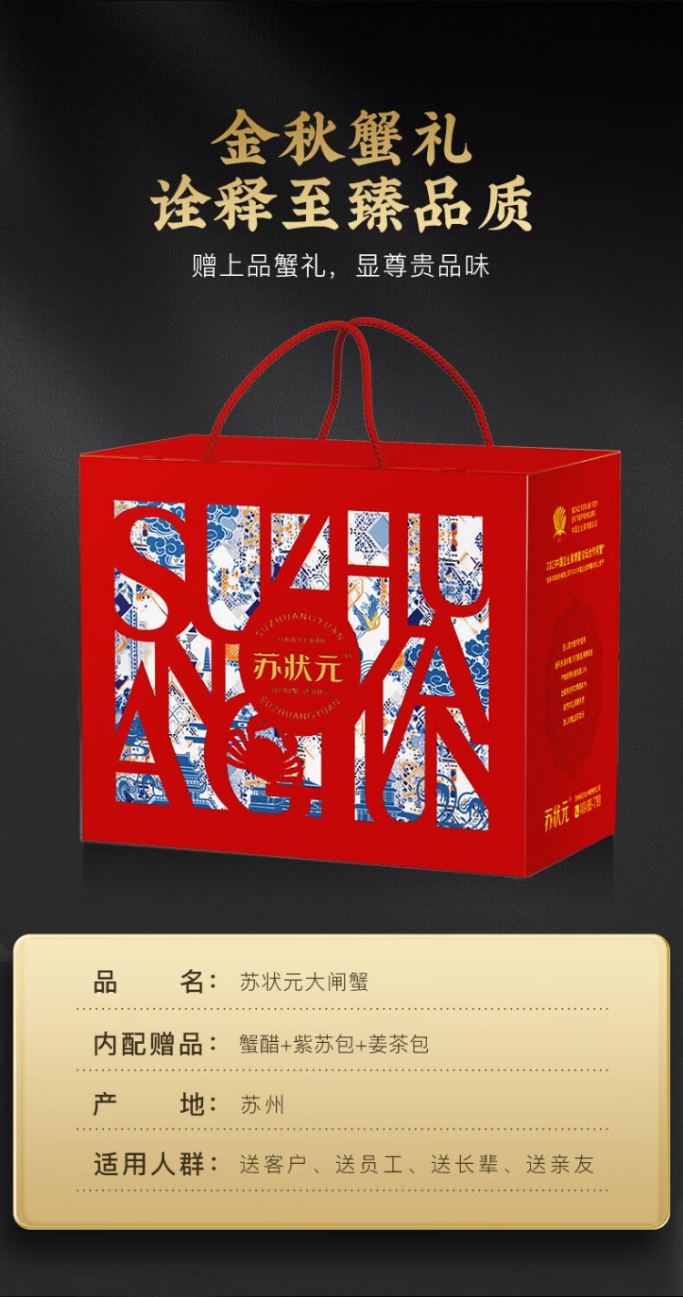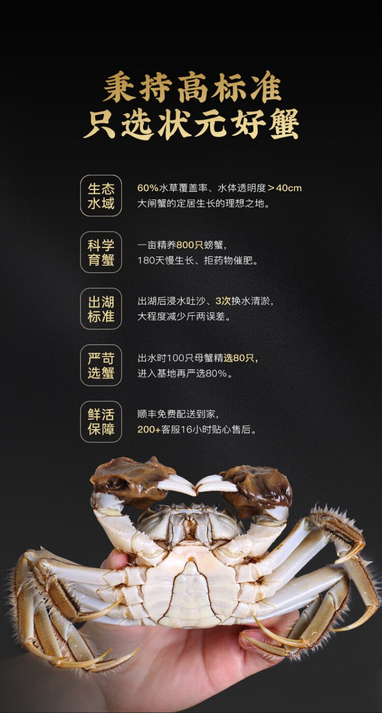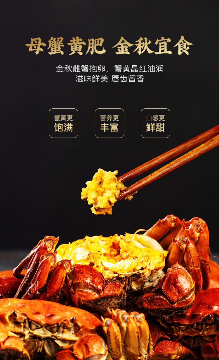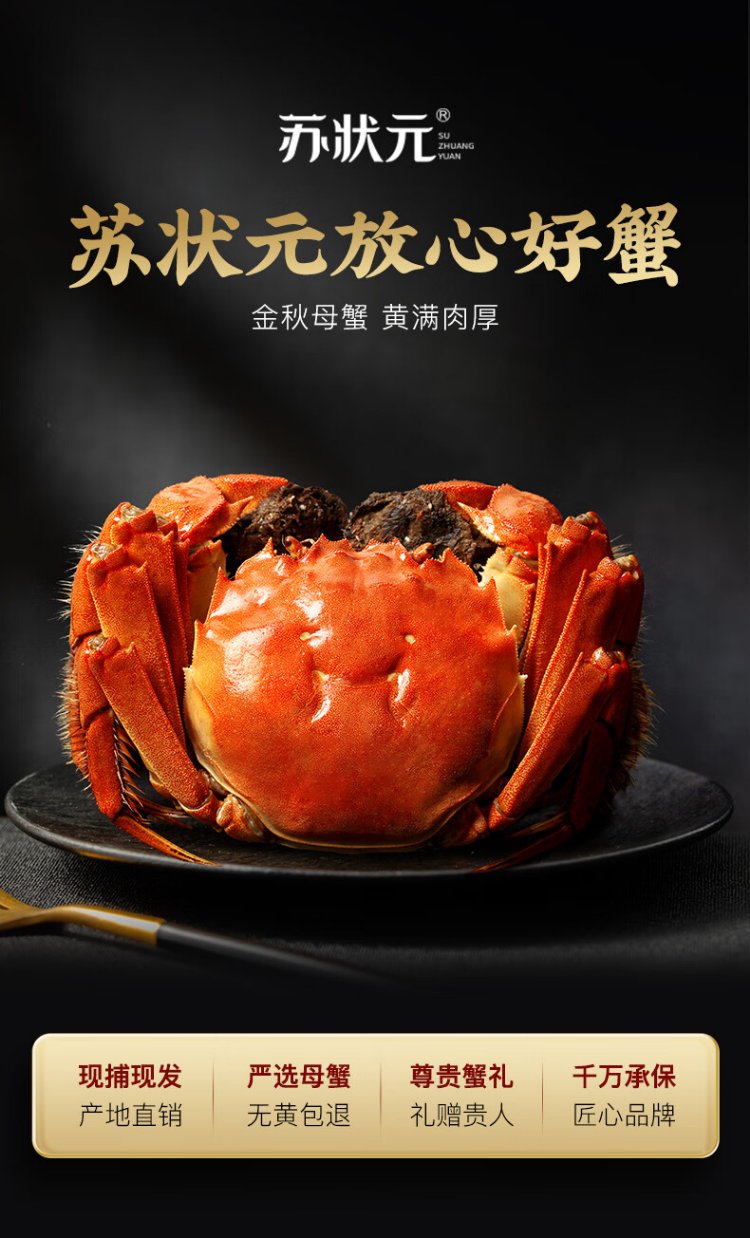 Live crabs Su Zhuangyuan fresh hairy crabs in stock whole female crabs 3.0-3.3 taels 8 fresh crabs large rope-free full-weight seafood gift box
