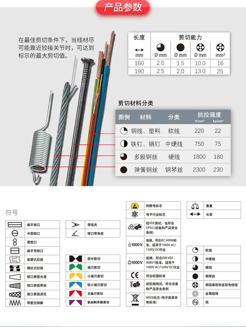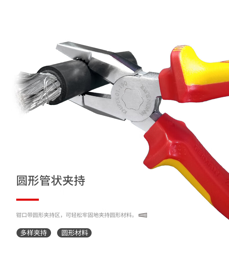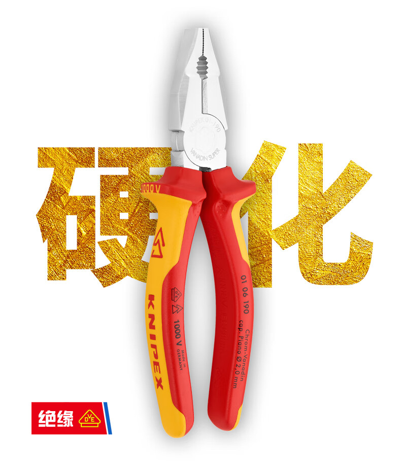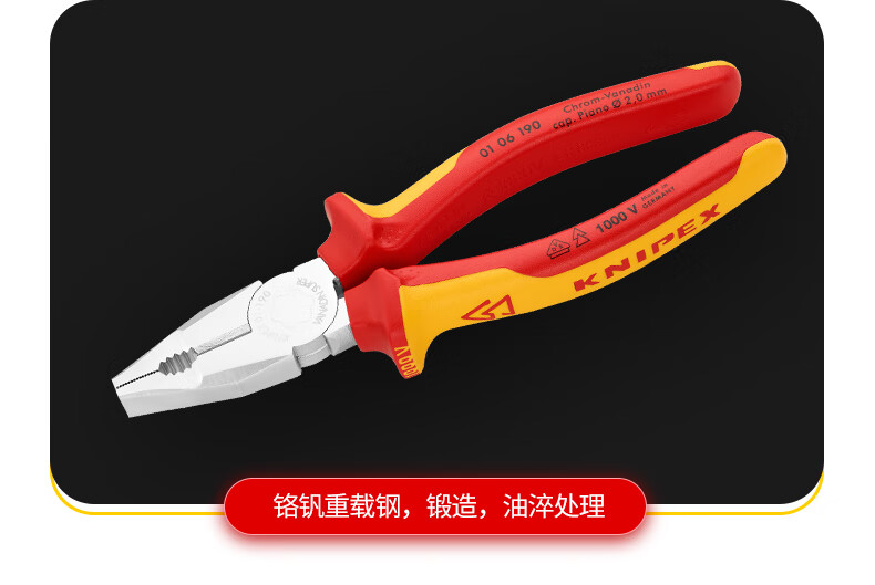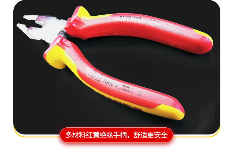 KNIPEX isolierter Drahtschneider 7,5 Zoll 190 mm deutsches Werkzeug Chrom-Vanadium-isolierter Hochleistungsschraubstock 01 06 190