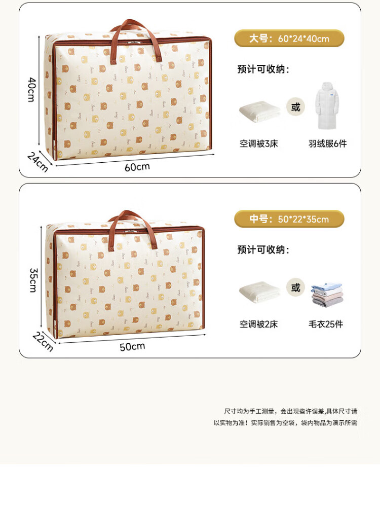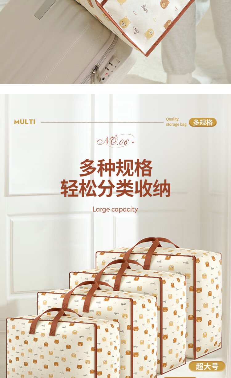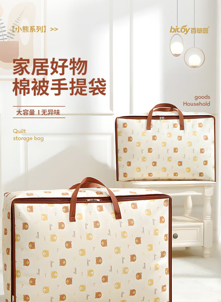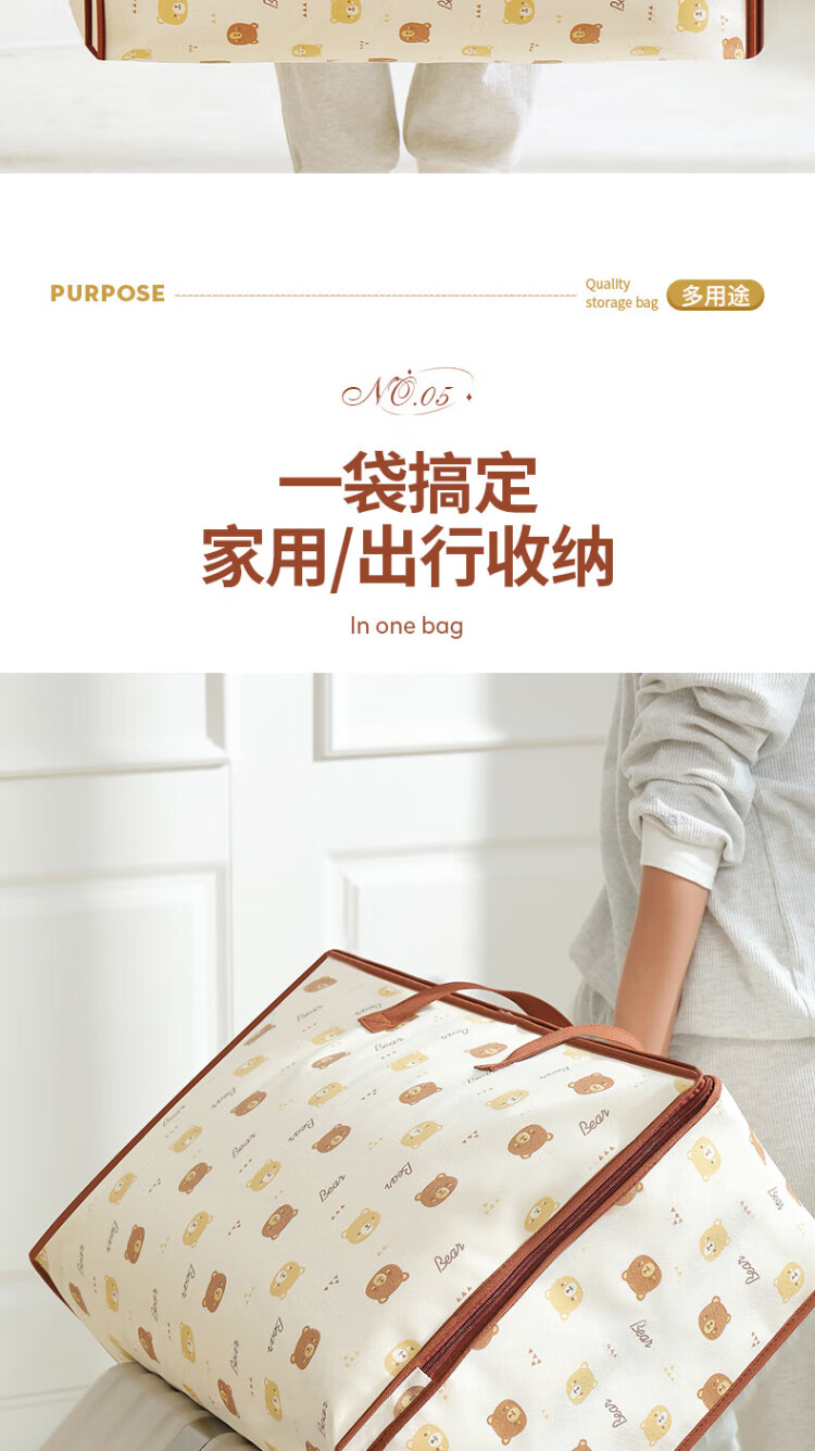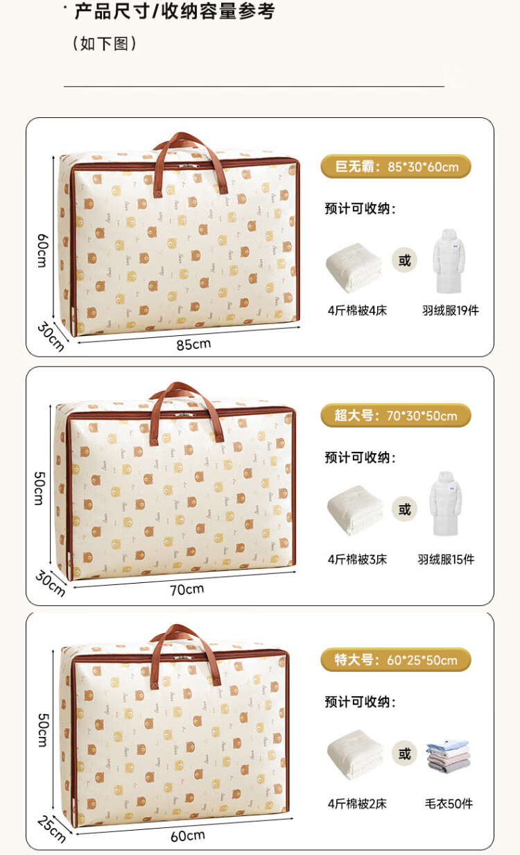 Baicaoyuan Quilt Storage Bag Moving Packing Bag Kindergarten Organizing Clothes Cotton Bedding Clothing Luggage Bag 60L Single Pack