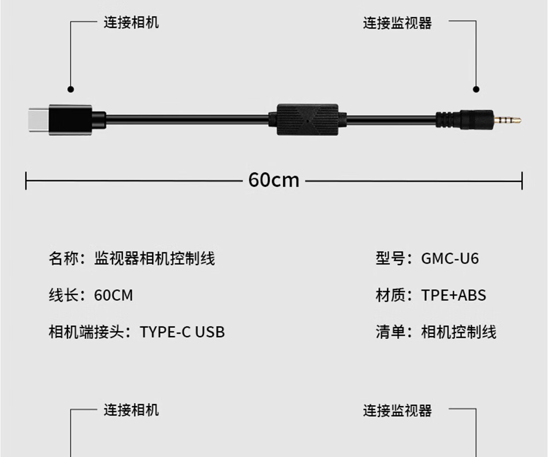 Godox scrapped GM6S camera touch screen highlight monitor 5.5-inch touch screen outdoor photography GM6S monitor camera control cable GMC-U4 Micro-USB port