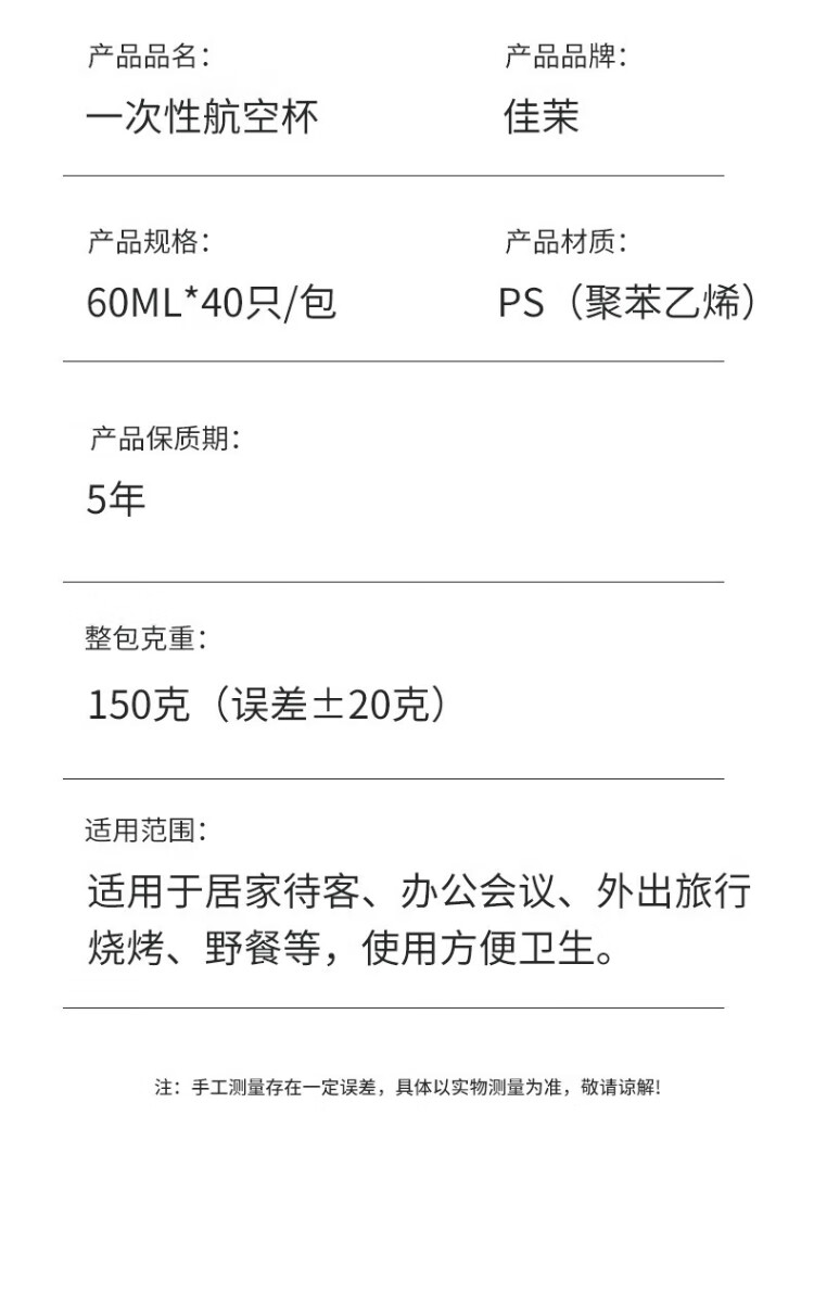 Jiamo aviation cups 40 disposable tea cups 60ML plastic thickened small wine cups transparent trial tea and drinking cups