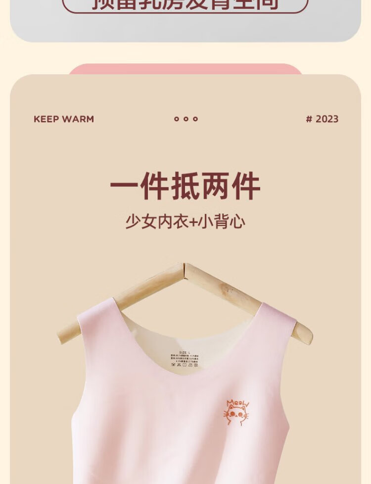 Yu Zhaolin 2-piece girls' underwear, warm girls' vests, adolescent traceless junior high school, primary school students and large children's bras