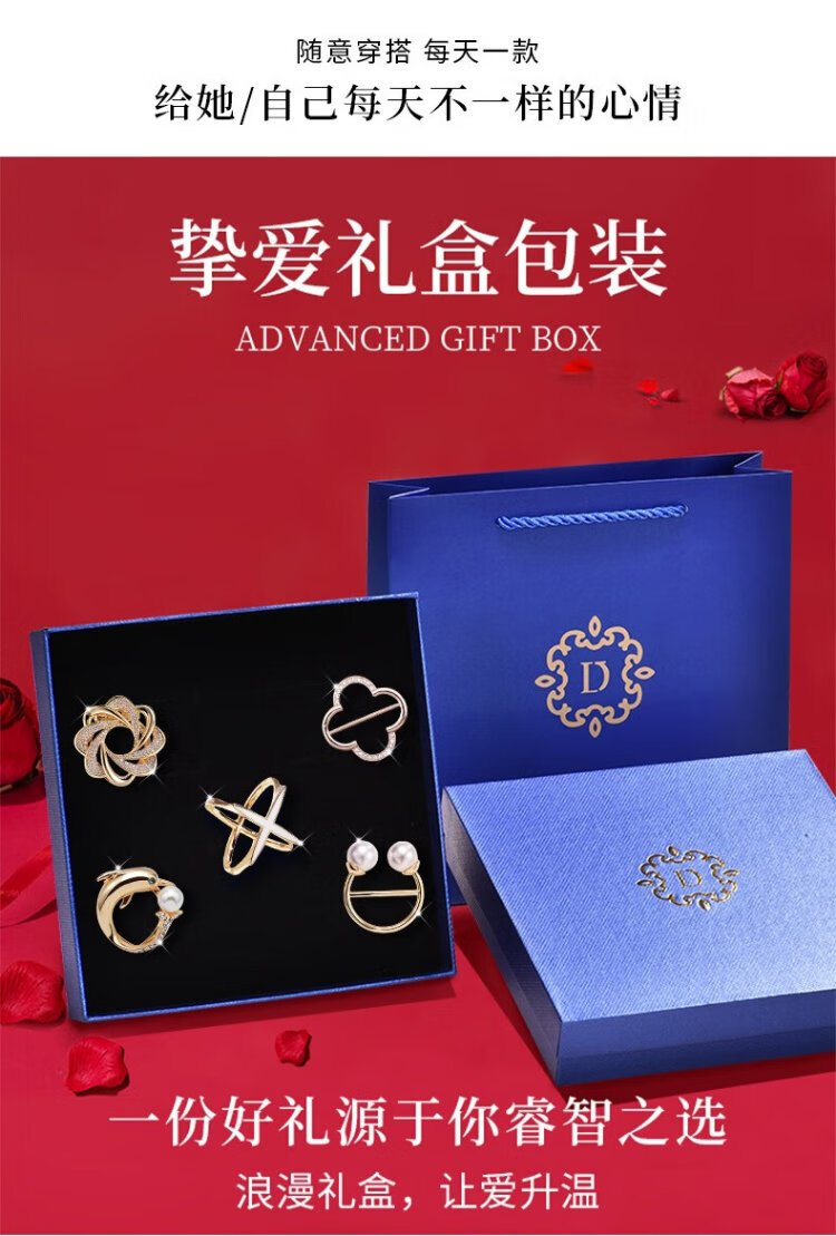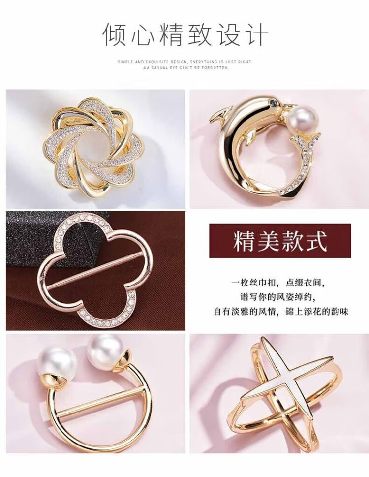 Crystal silk scarf buckle five-piece set, high-end practical pin decorative ring buckle, anti-exposure birthday gift for girl to give to girlfriend