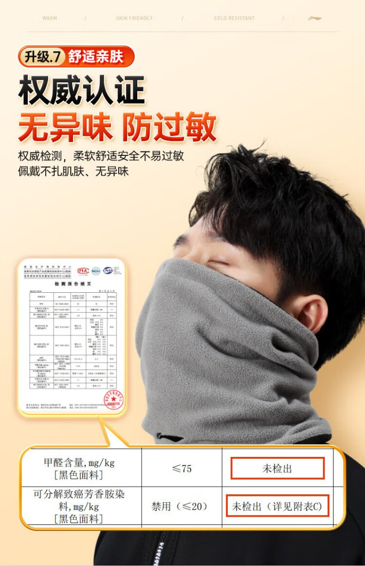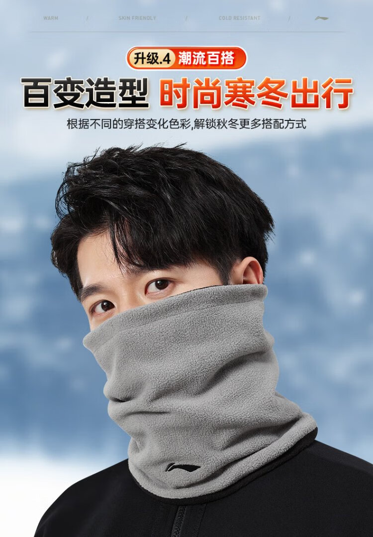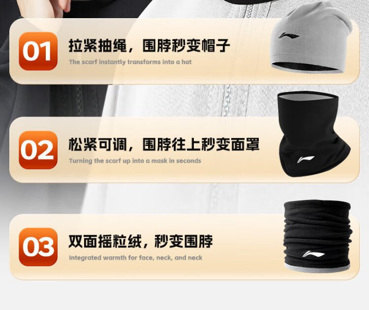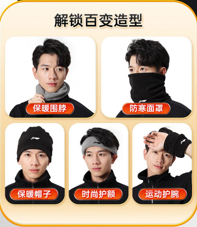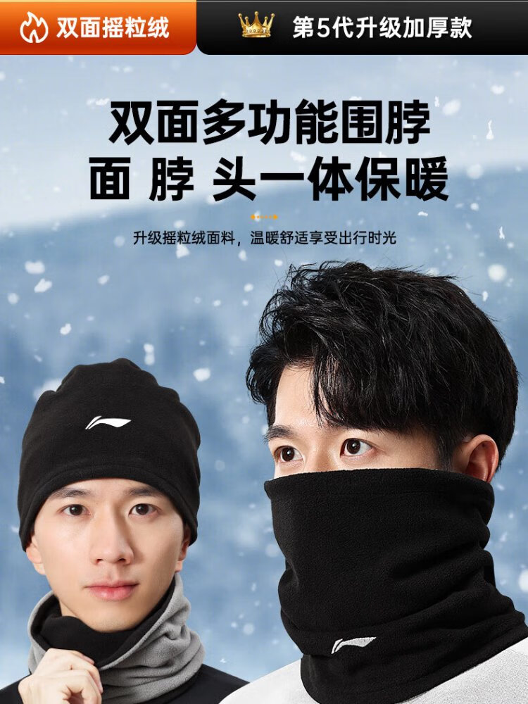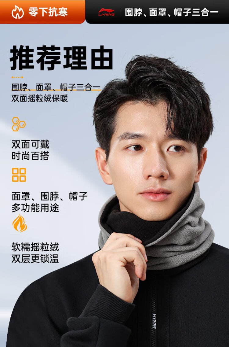 Li-ning (LI-NING) neck scarf cycling mask set winter men and women cold wind warm hat ski face protection neck scarf hood cycling