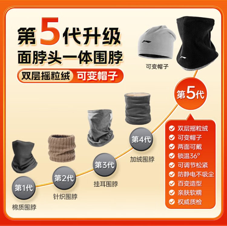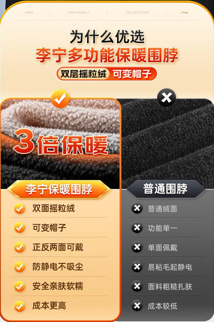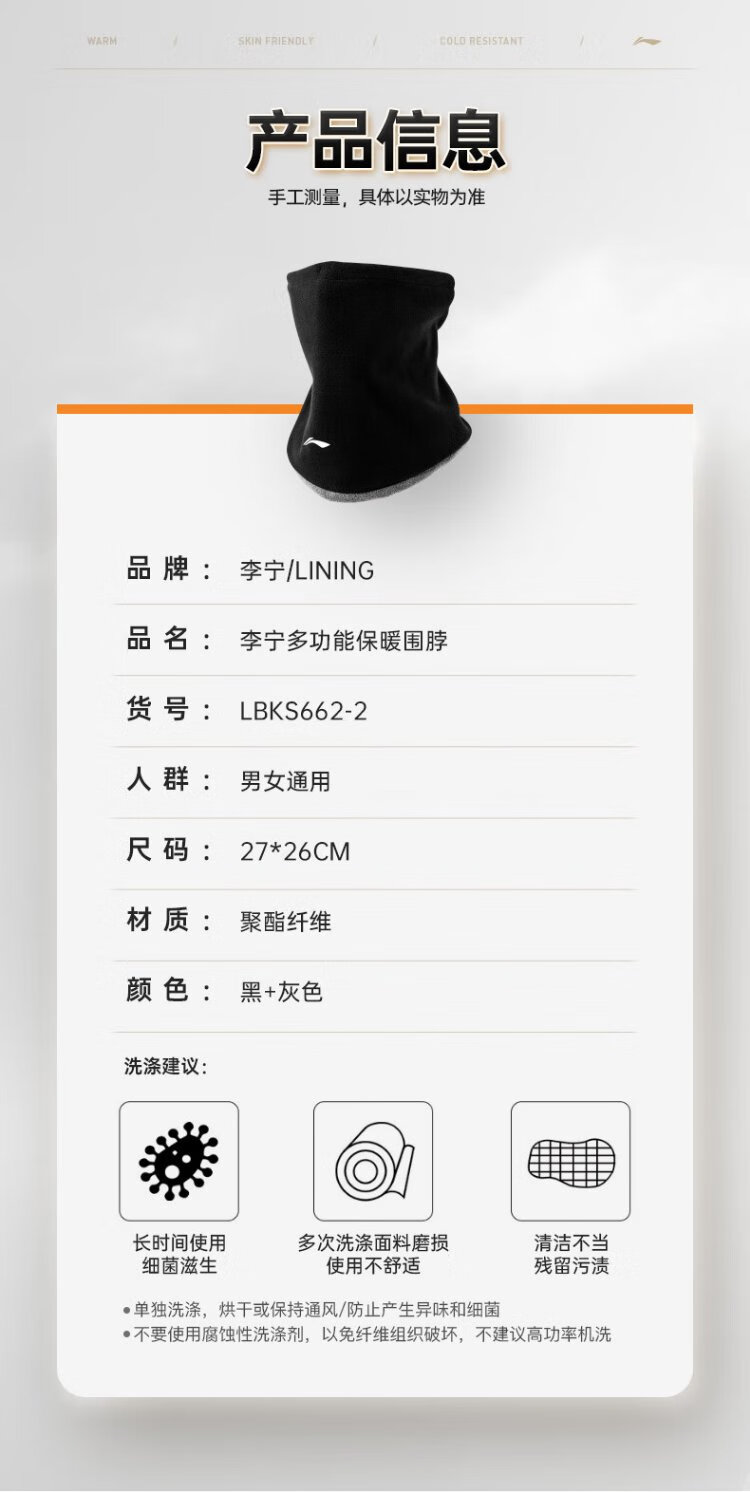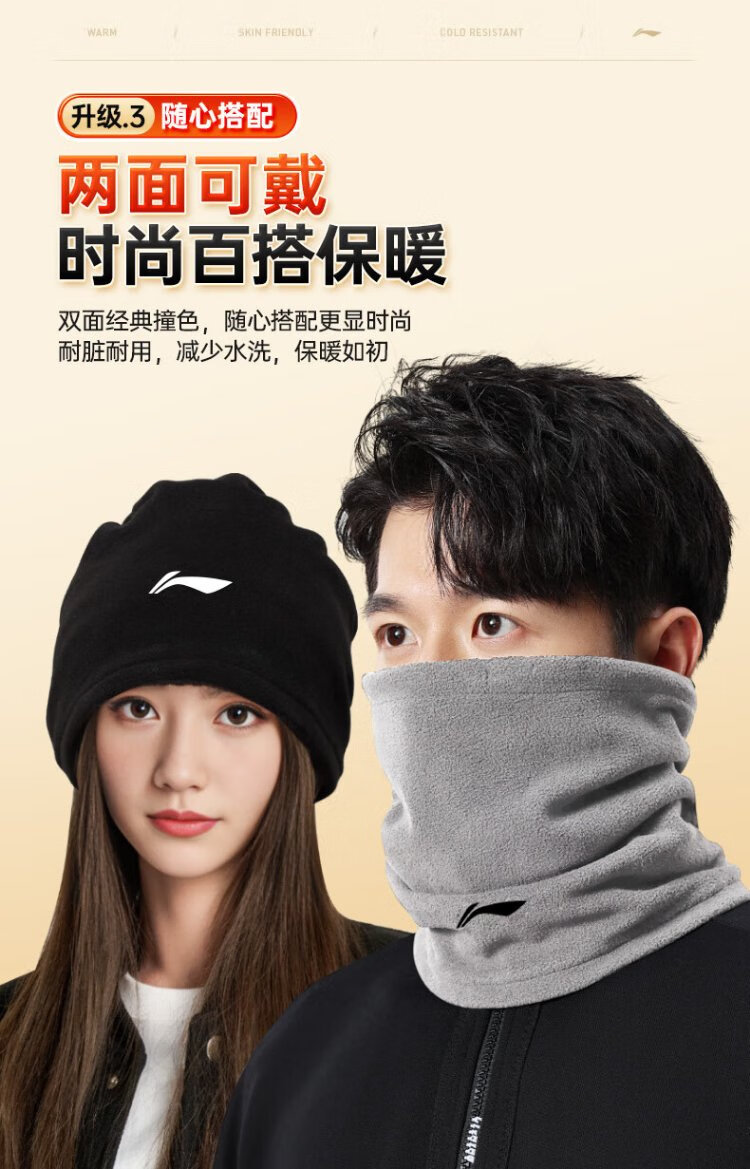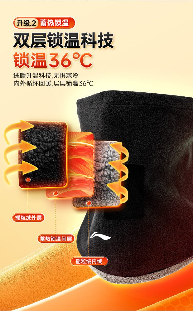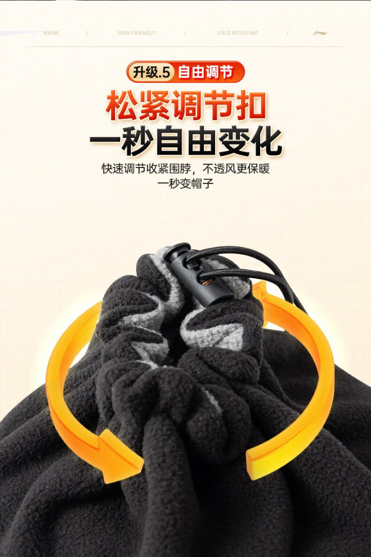 Li-ning (LI-NING) neck scarf cycling mask set winter men and women cold wind warm hat ski face protection neck scarf hood cycling
