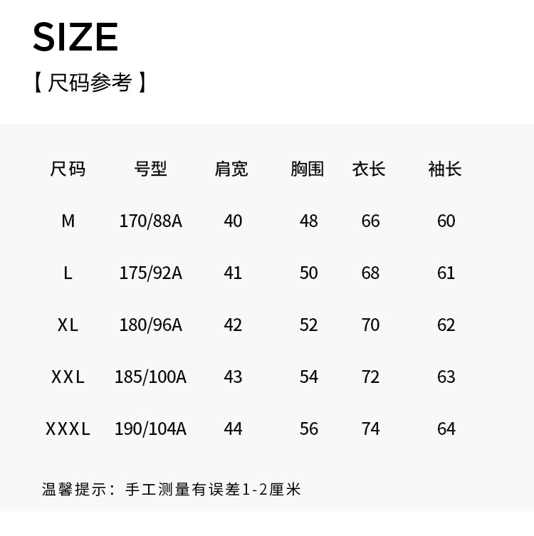 China (cm) 160-165/84-86 165-170 / 88-90 167-172 / 92-96 168-173 / 98-102 170-176 / 106-110