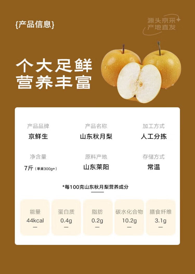 Jingxiansheng Shandong Laiyang Qiuyue Pear Net weight 8Jin Jin is equal to 0.5kg Single fruit 300g+ Self-operated fruit Straight from the source