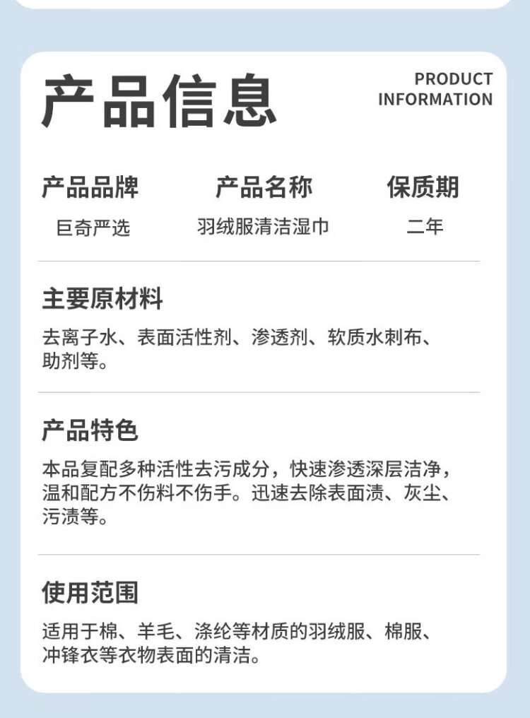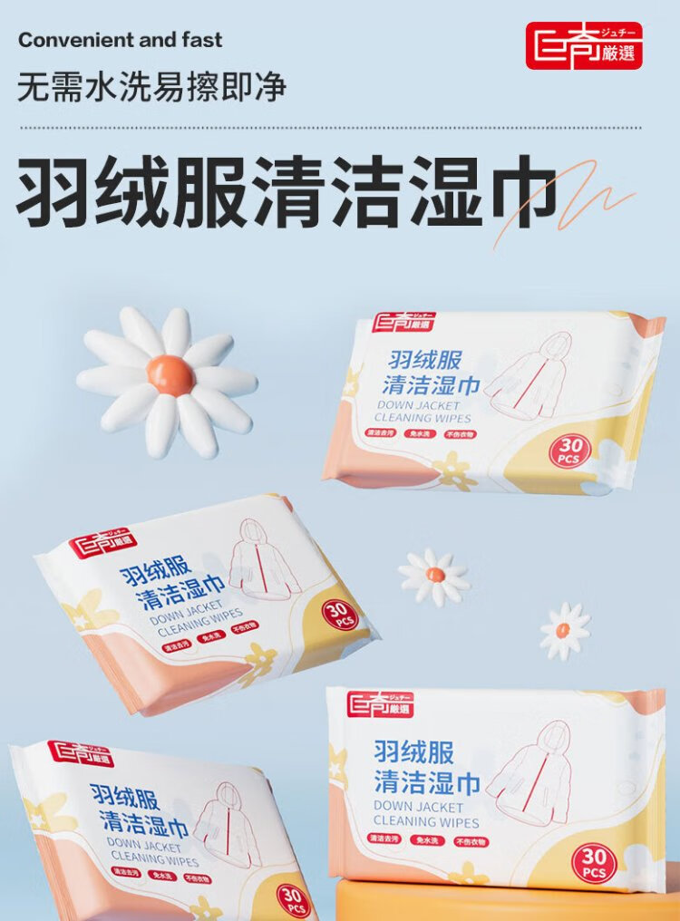 Juqi Selected Down Jacket Cleaning Wipes 150 pieces Clothes stain removal wipes no water washable oil stain artifact dry cleaning agent