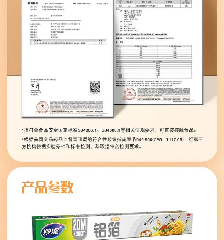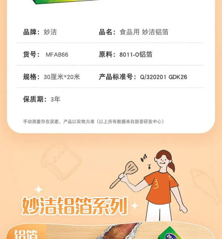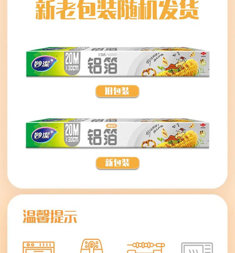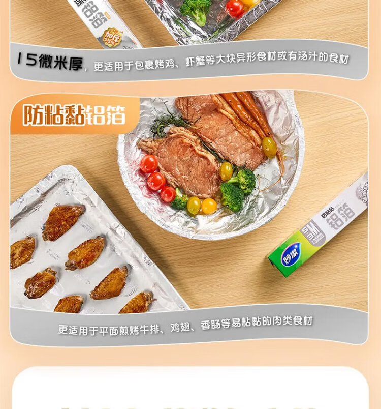 Miaojie aluminum foil tin foil 20 meters boxed kitchen baking barbecue oven air fryer special water lock to keep fresh and not easy to burn