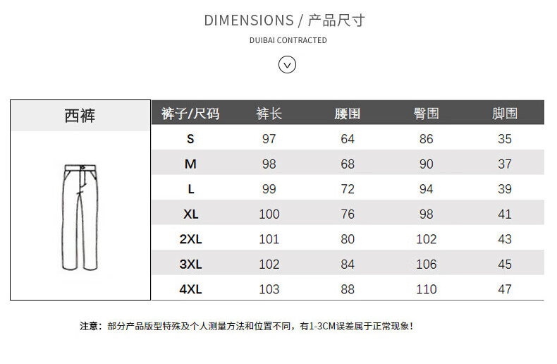 Outseam (cm) 99 cm 101.5 cm 104 cm 106.5 cm 109 cm