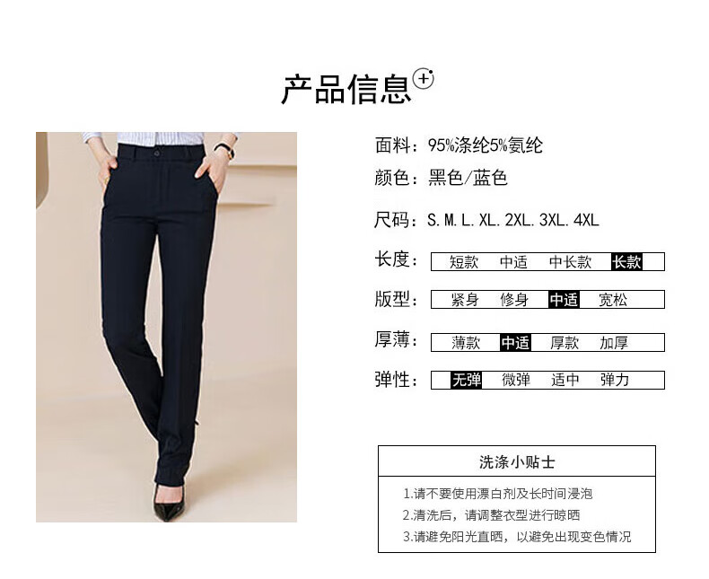 Troman no-iron trousers women's professional overalls straight trousers for work women's trousers formal work trousers black