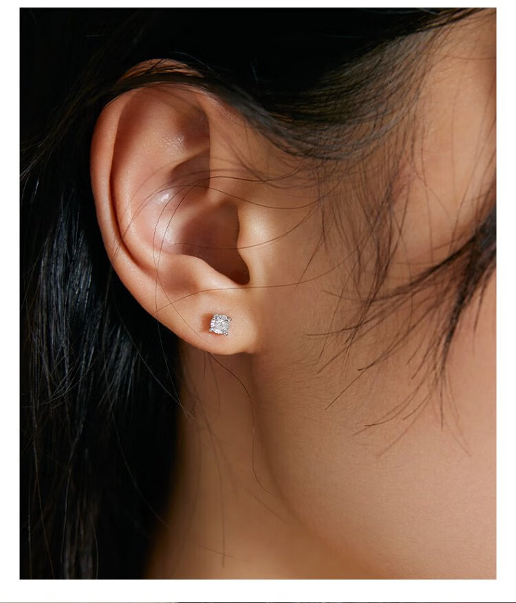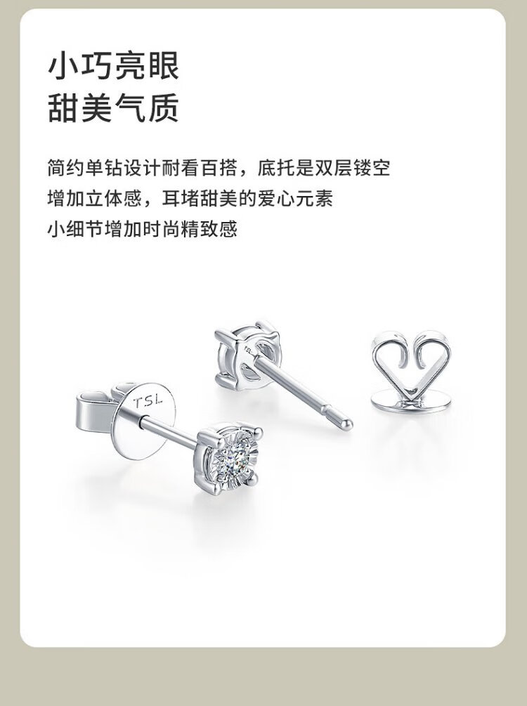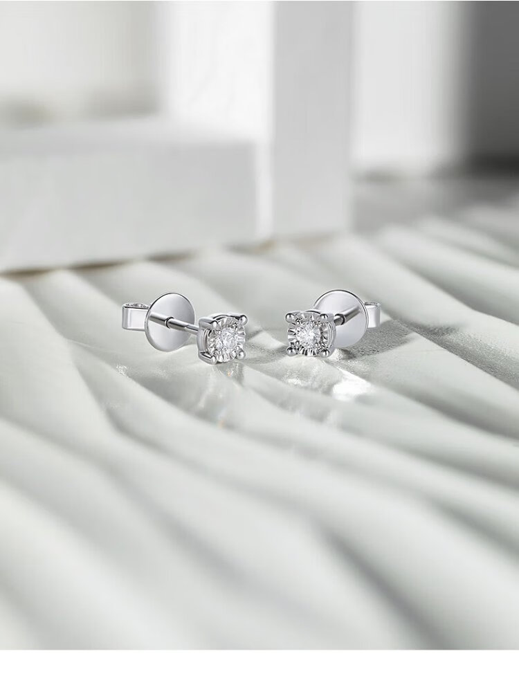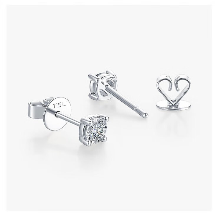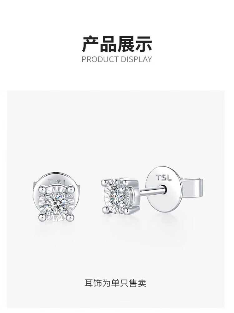 Xie Ruilin (TSL) 18K gold stud earrings geometric inlaid round diamond earrings for women, single BE277 (63890)
