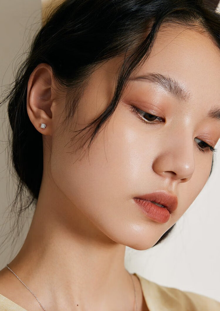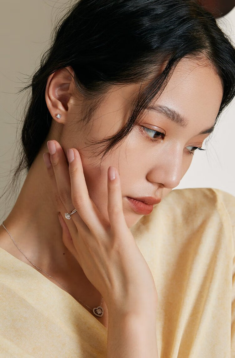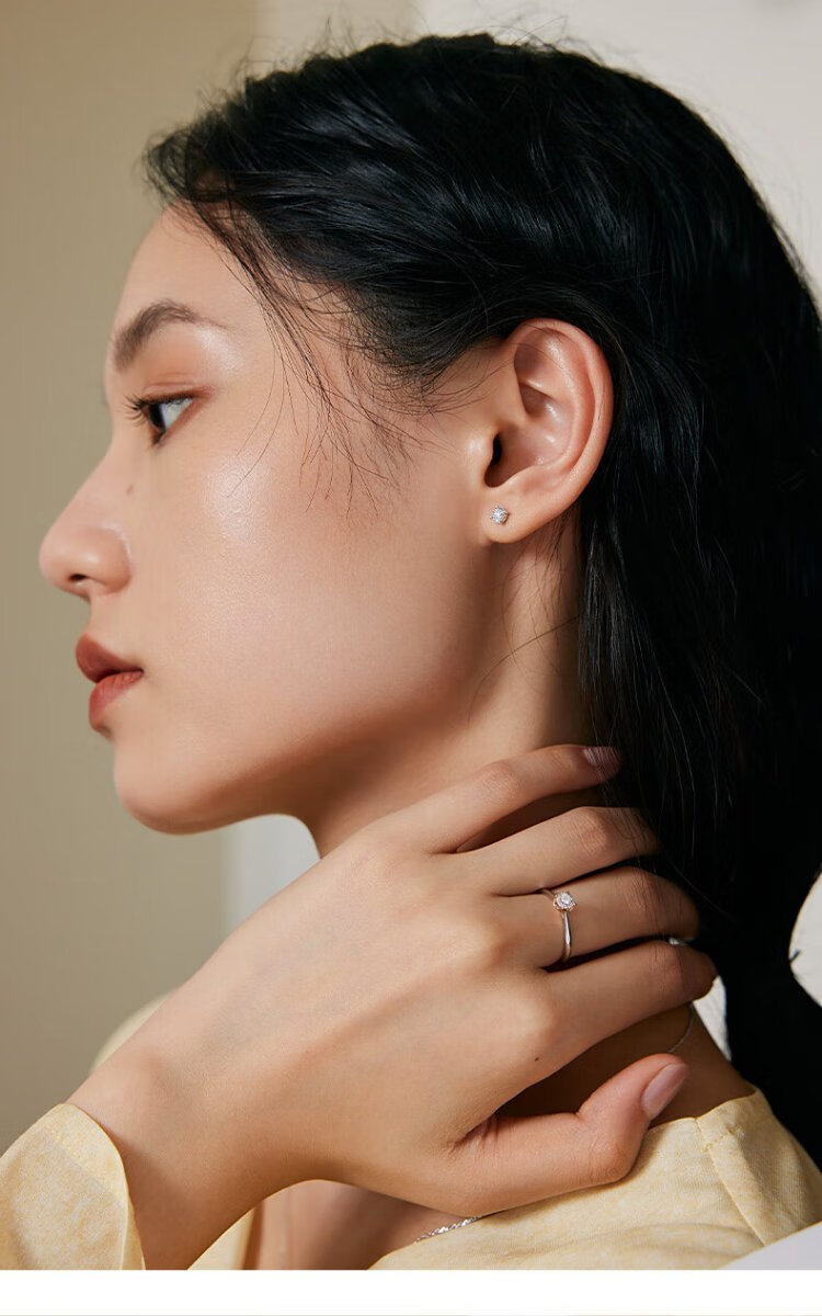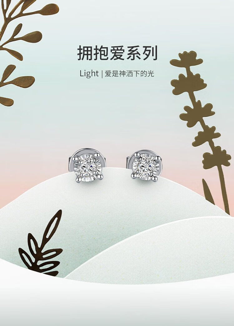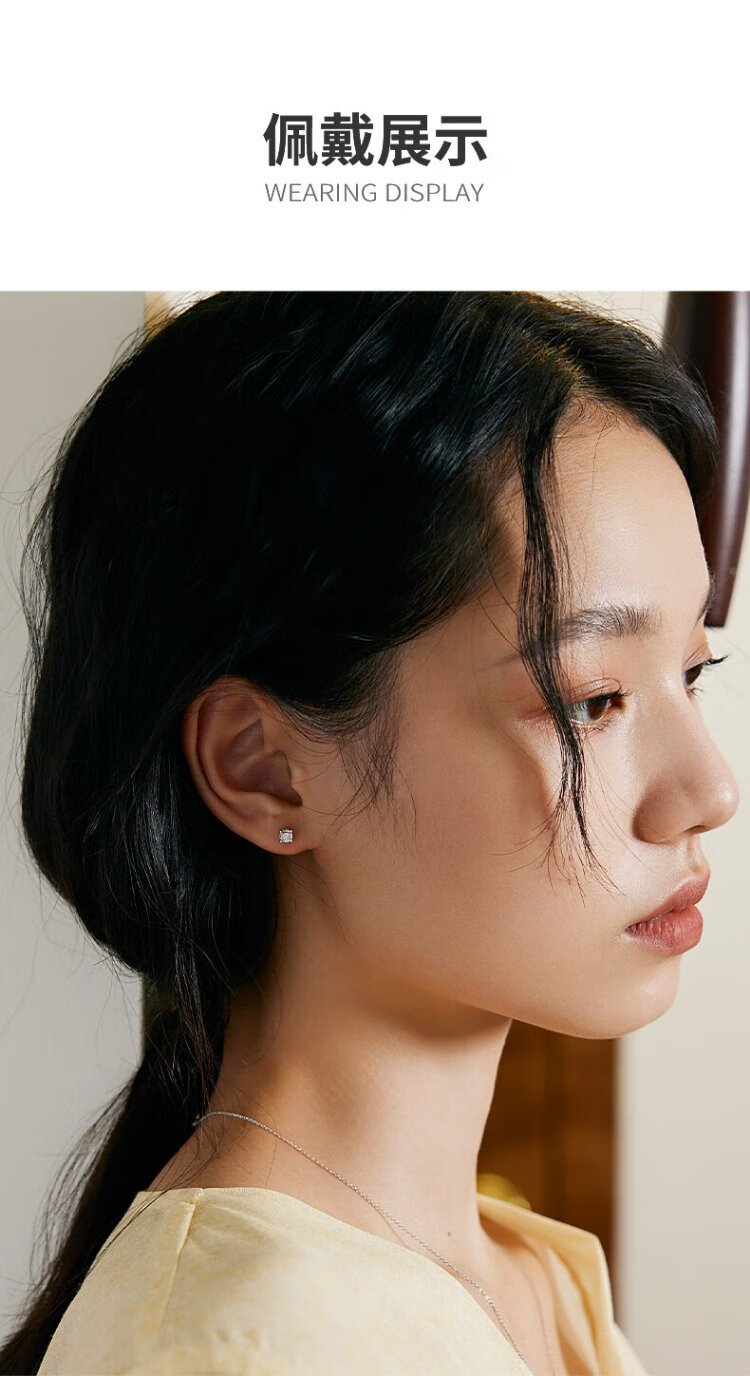 Xie Ruilin (TSL) 18K gold stud earrings geometric inlaid round diamond earrings for women, single BE277 (63890)