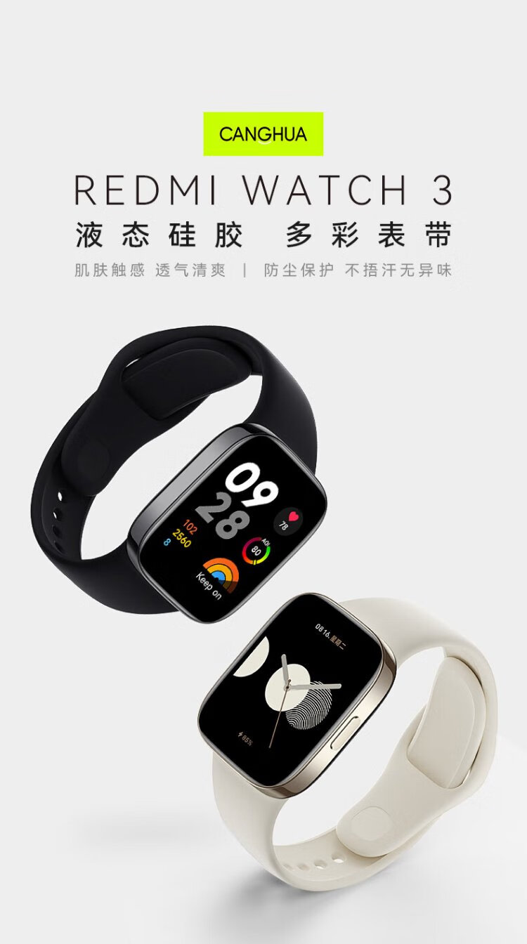 CangHua is suitable for Redmi Watch 3 watch strap, Redmi watch 3 watch strap, sports version watch strap, waterproof and breathable sports silicone replacement wrist strap, black