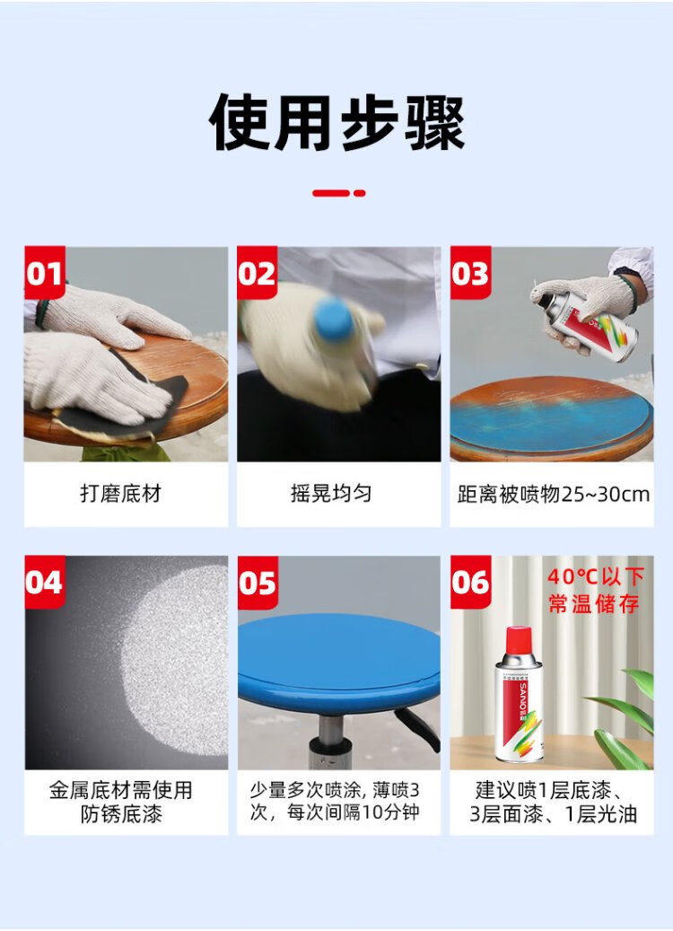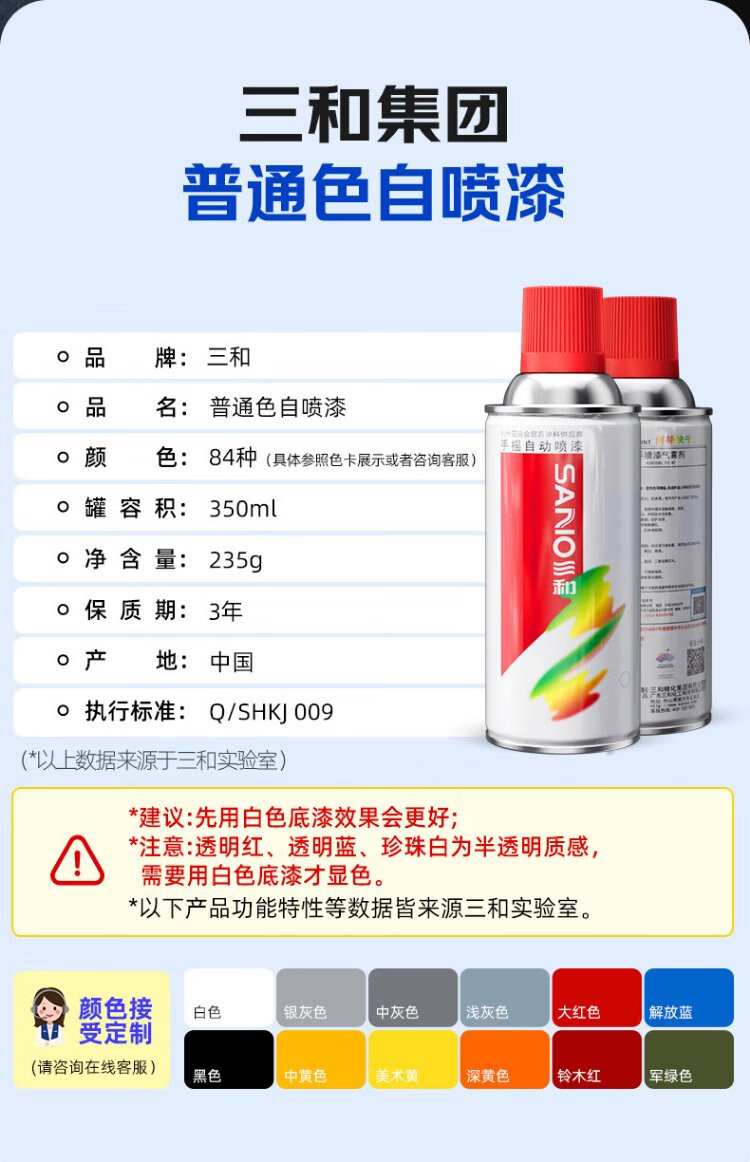 Sanhe self-spraying hand spray wheel color change anti-rust wall graffiti furniture railing renovation repair paint 40 white 12 cans (box)