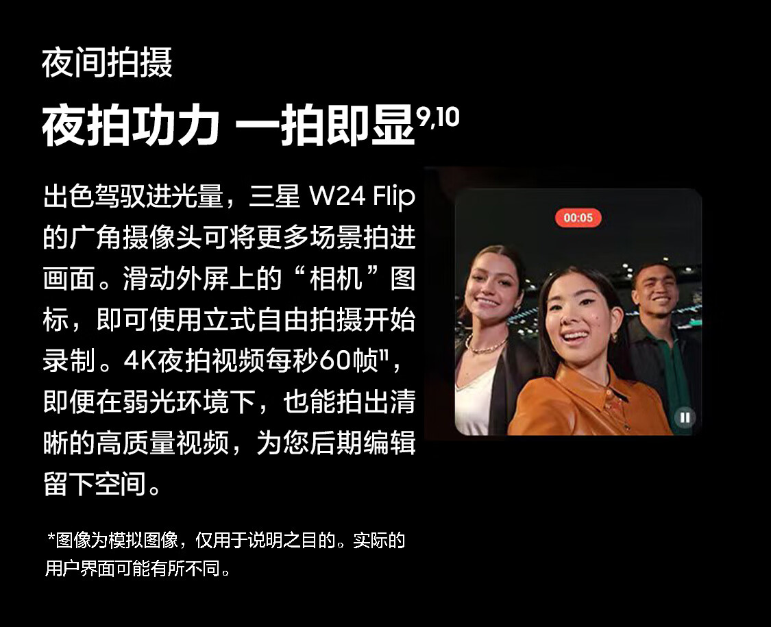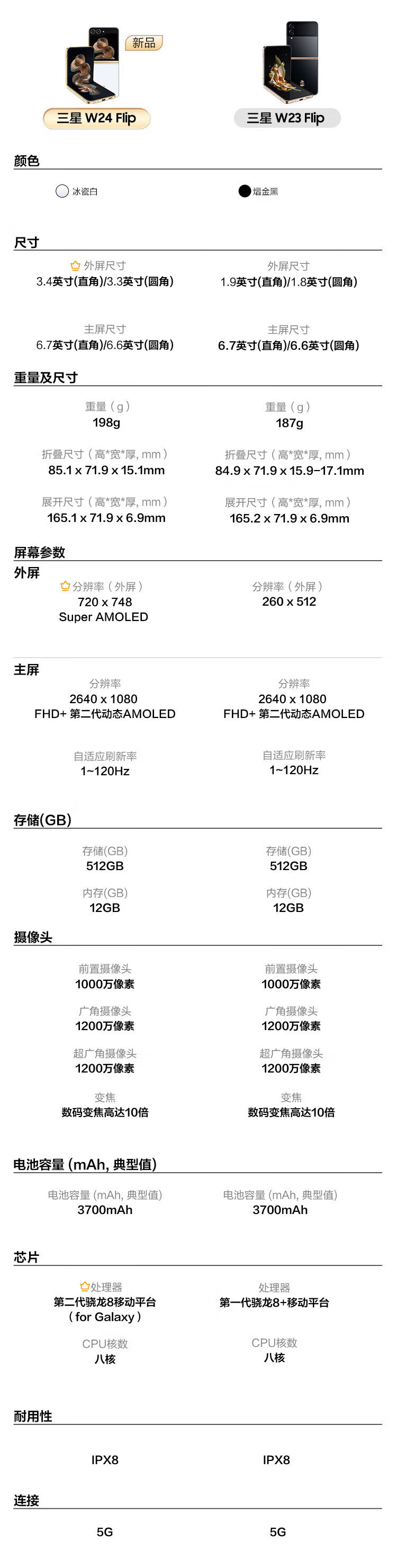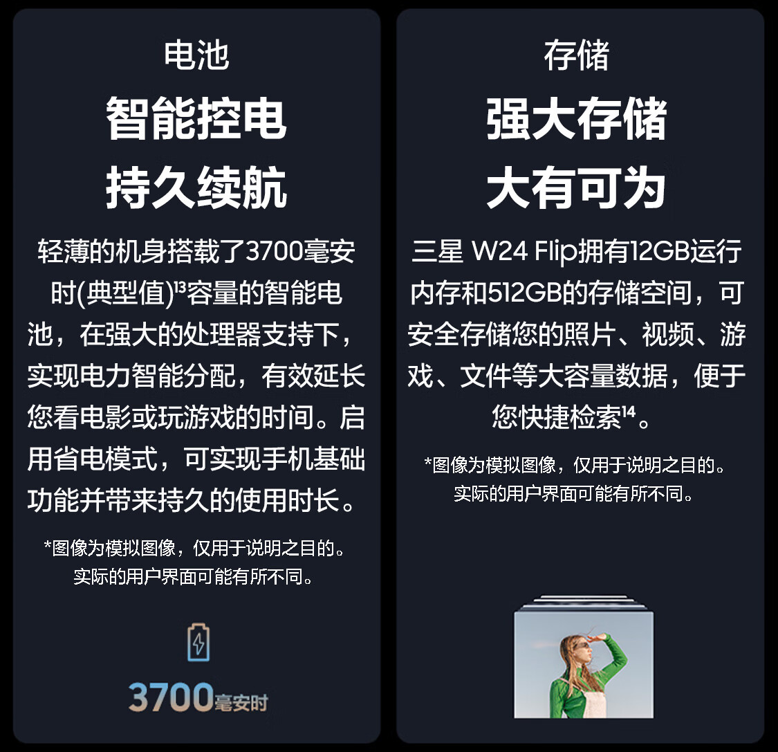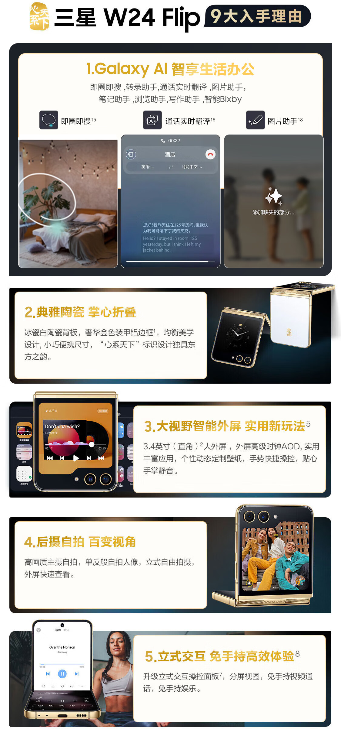 三星Samsung 心系天下 W24 Flip AI手机 折叠屏手机 智能外屏掌心折叠 拍照手机 12GB+512GB 冰瓷白