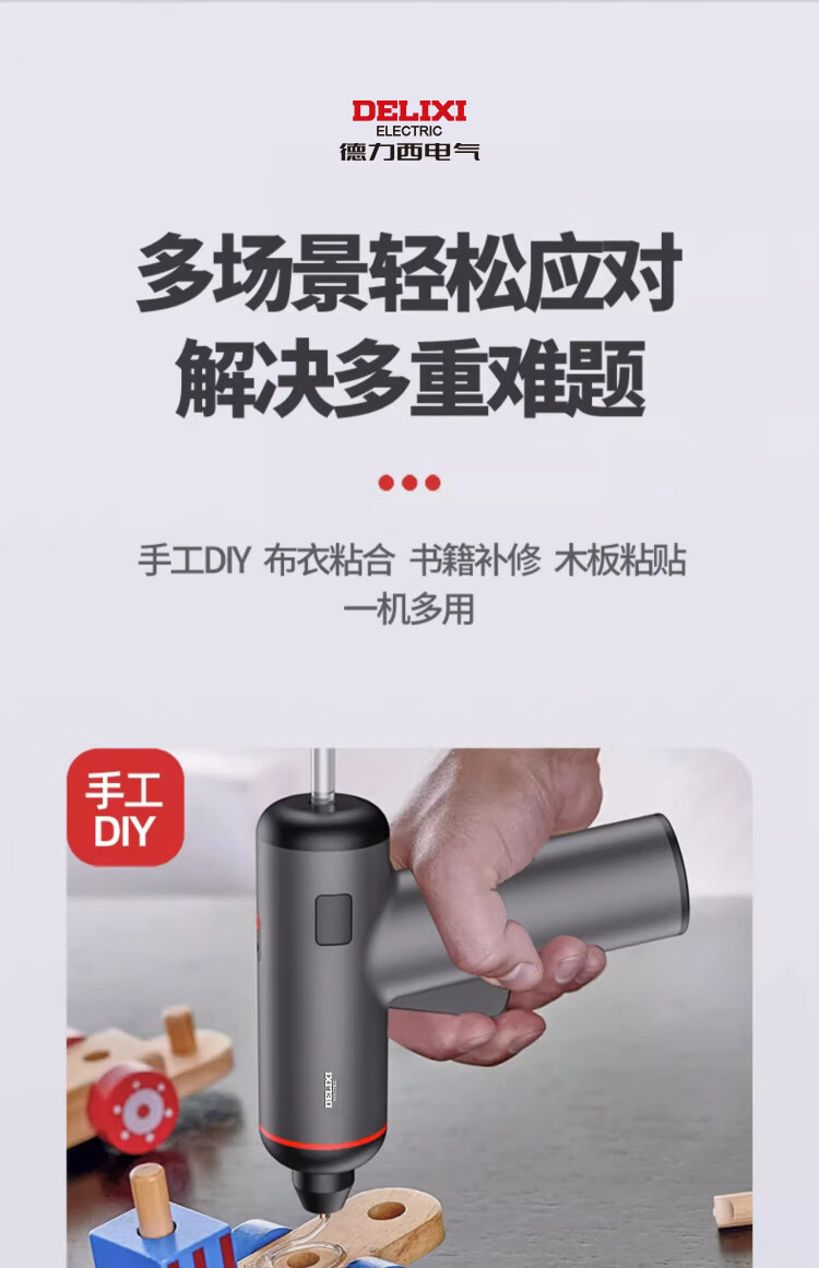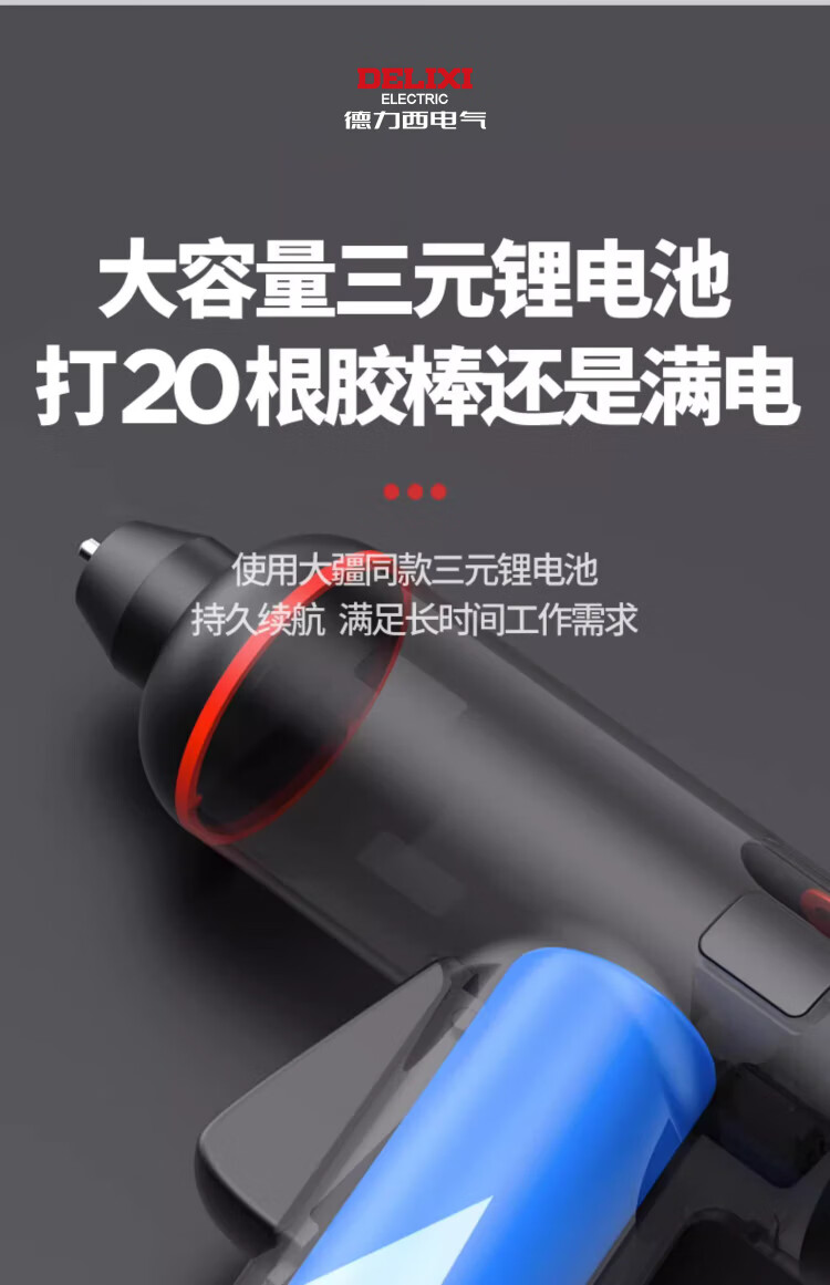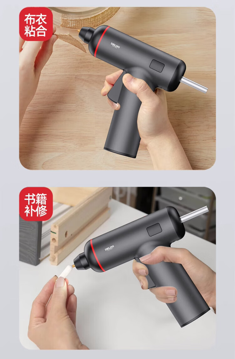 Delixi Electric hot melt glue gun wireless DIY children's handmade household hot melt glue rechargeable lithium battery small glue stick hot melt gun